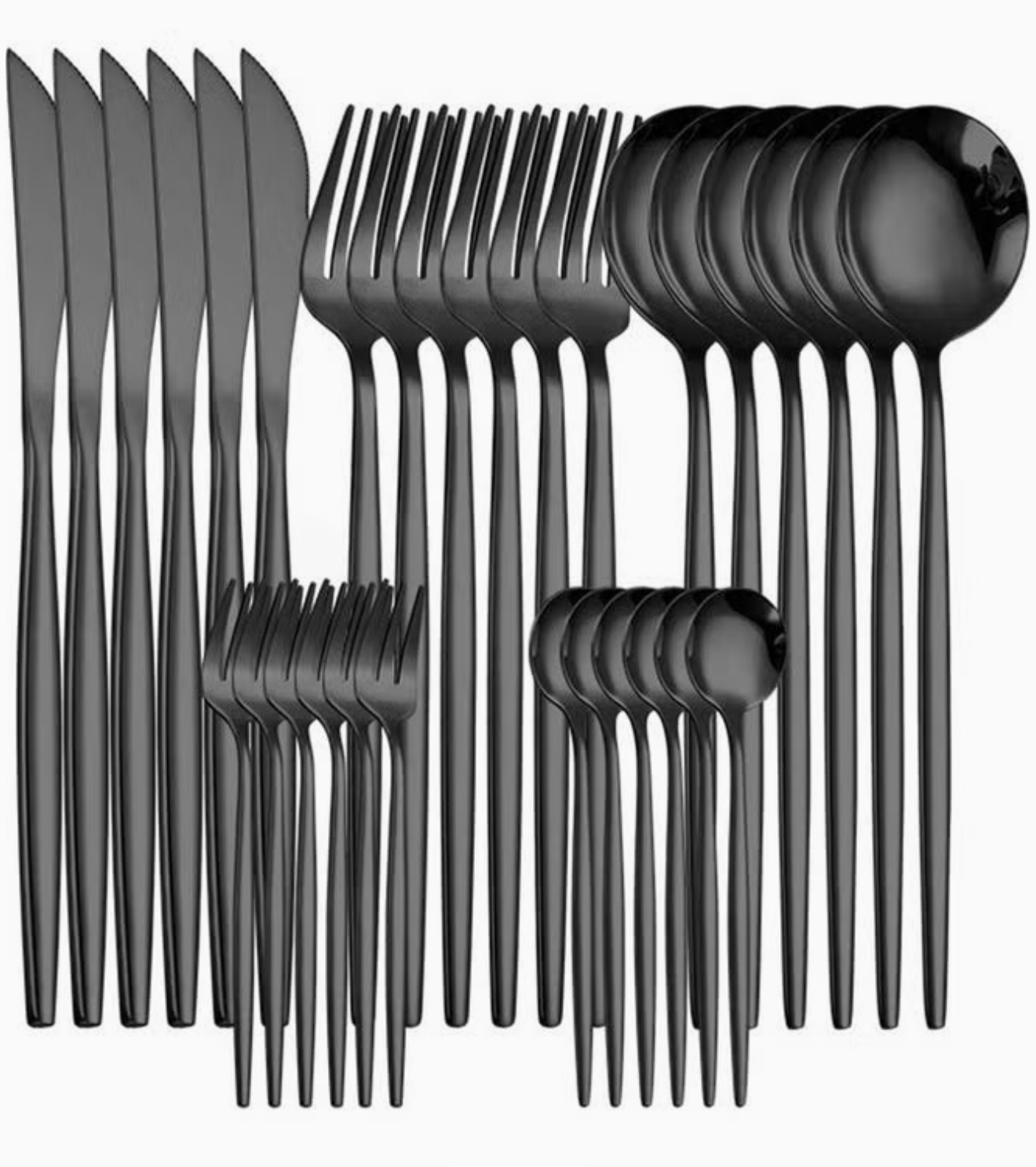 ست کامل ۳۰ پارچه چاقو، چنگال و قاشق استیل مشکی
