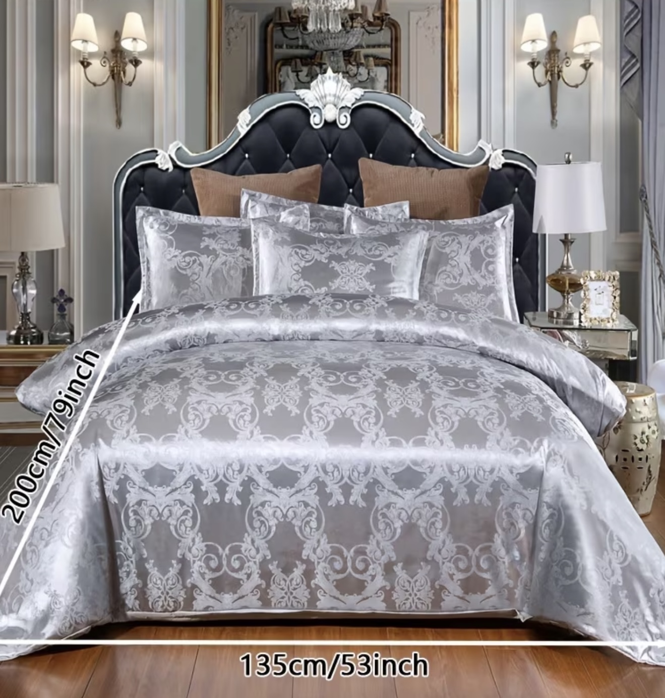 ست کاور لحاف ژاکارد ساتن ۳ تکه به سبک اروپایی، شامل ۱ عدد کاور لحاف و ۲ عدد روبالشی، بدون الیاف داخلی