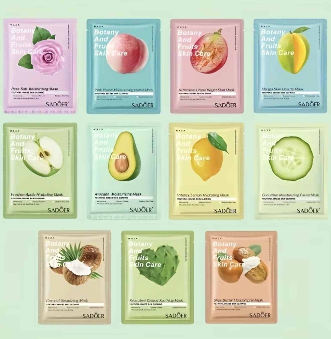 ست ۱۰ عددی ماسک مرطوب‌کننده گیاهی و میوه‌ای