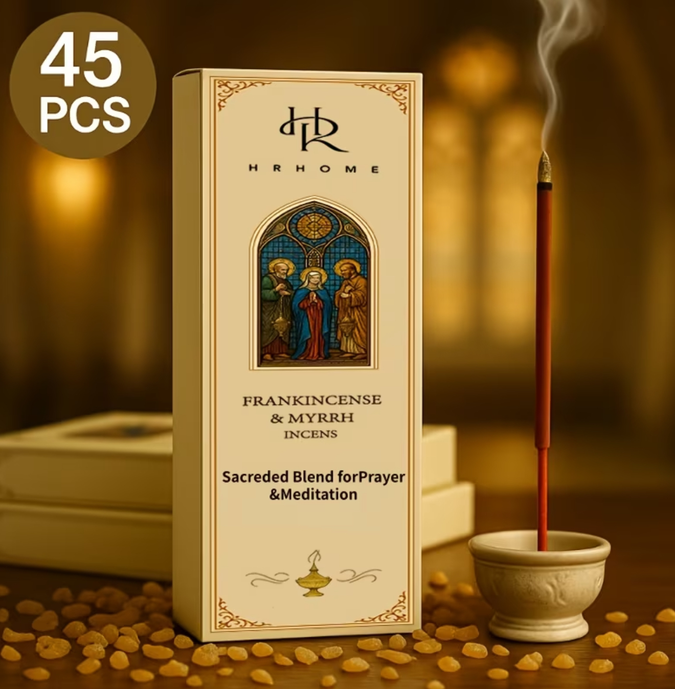 ست ۴۵ عددی عود دست ساز با رایحه ای غنی ممتاز کندر و مر – عطری مقدس برای دعا، مدیتیشن و آرامش. طبیعی، تازه
