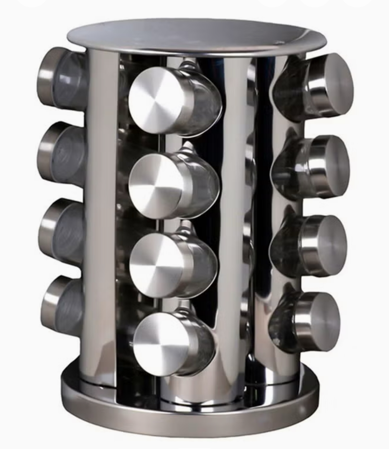 ست ۱۶ عددی شیشههای ادویه با پایه نگهدارنده، رنگ نقرهای، ابعاد هر شیشه: ۶.۵ × ۶.۵ × ۱۱.۵ سانتیمتر
