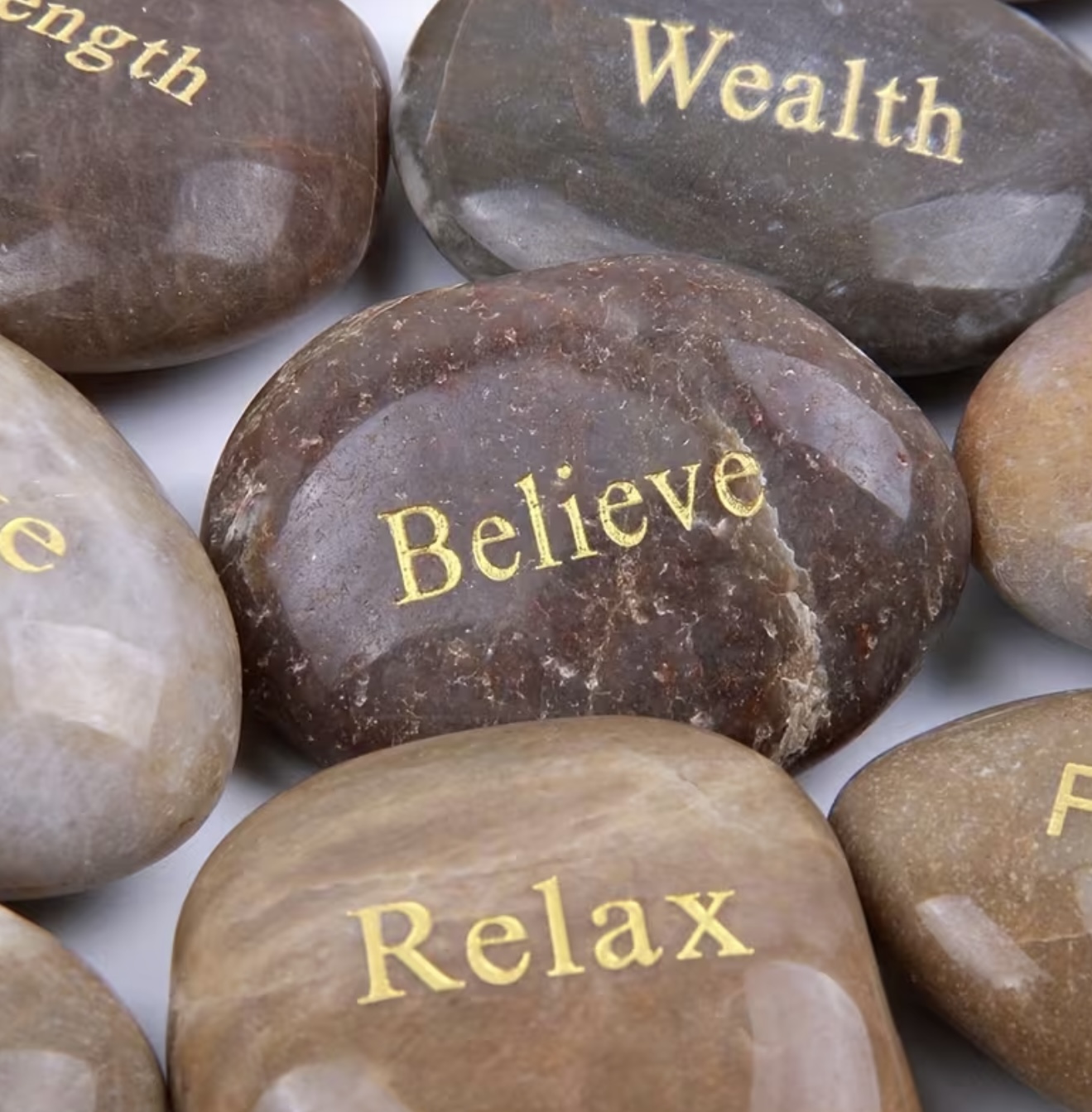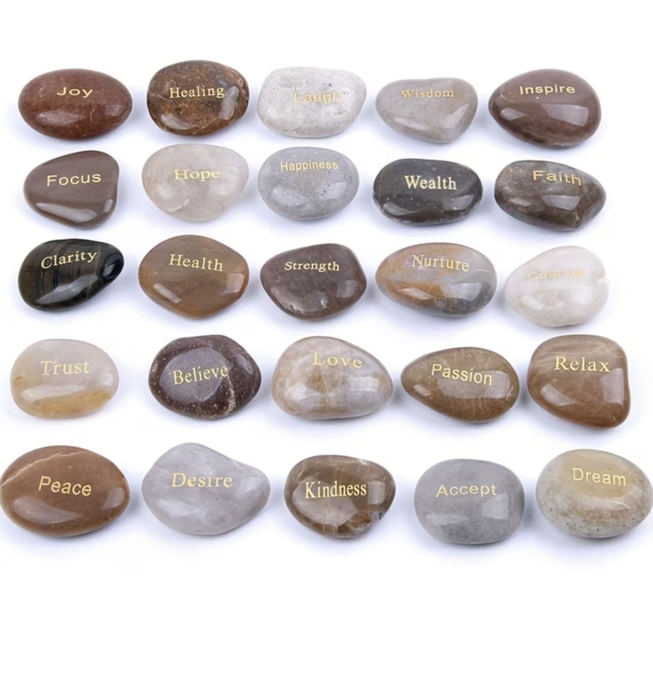 ست ۲۵ عددی سنگ رودخانه‌ای طبیعی با جملات الهام‌بخش