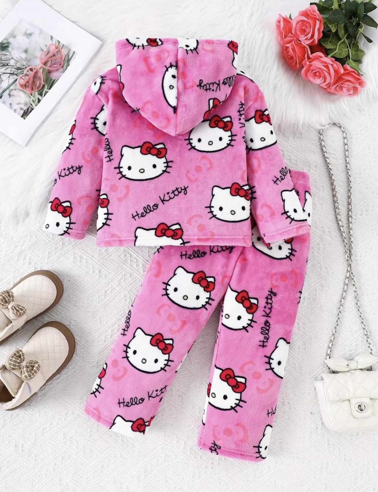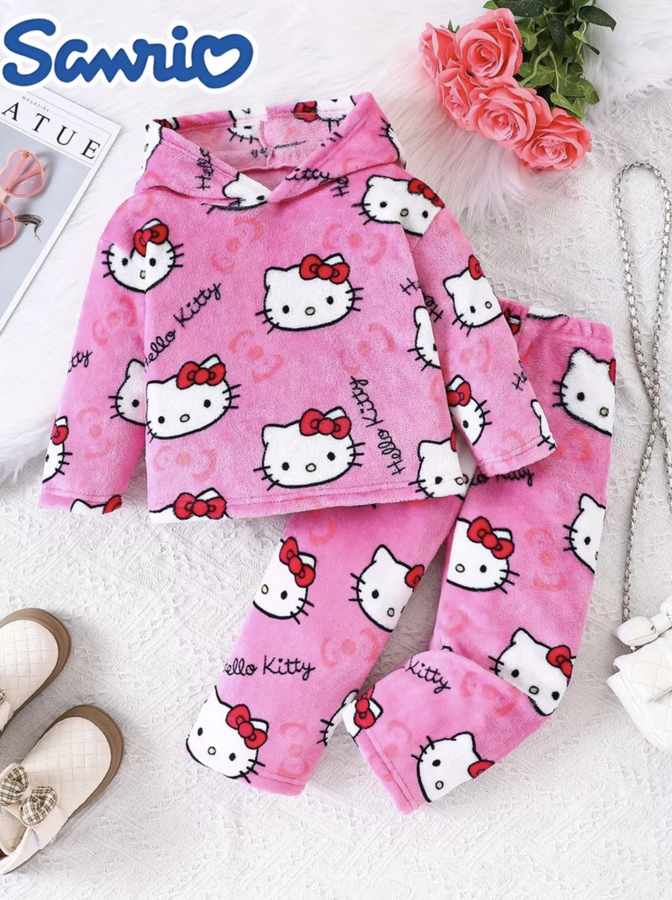 ست ۲ تکه دخترانه کیتی شامل:هودی بلند آستین بلند و کرکی و شلوار راحتی