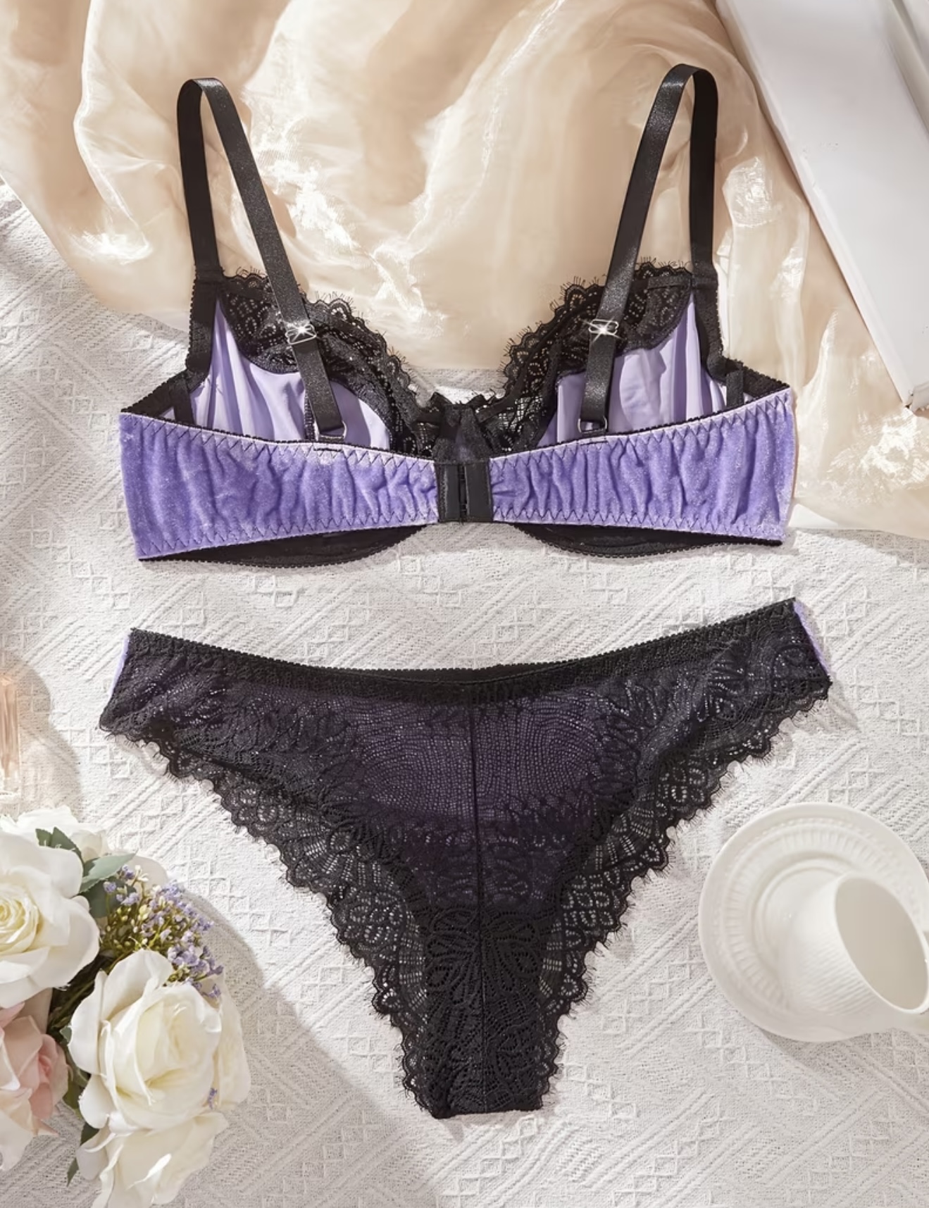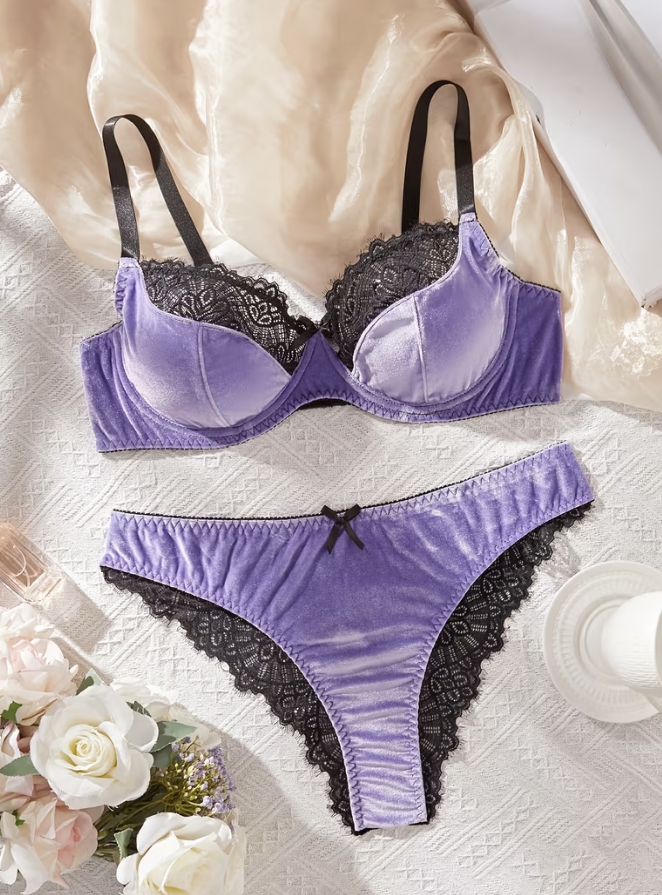 ست ۲ تکه سوتین و شورت با حاشیه توری مخملی