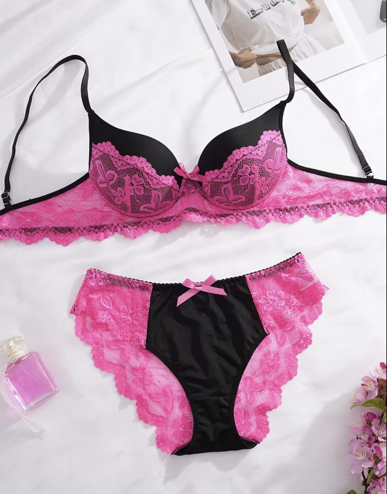 ست ۲ تکه سوتین و شورت توری شیک با پوشش کامل