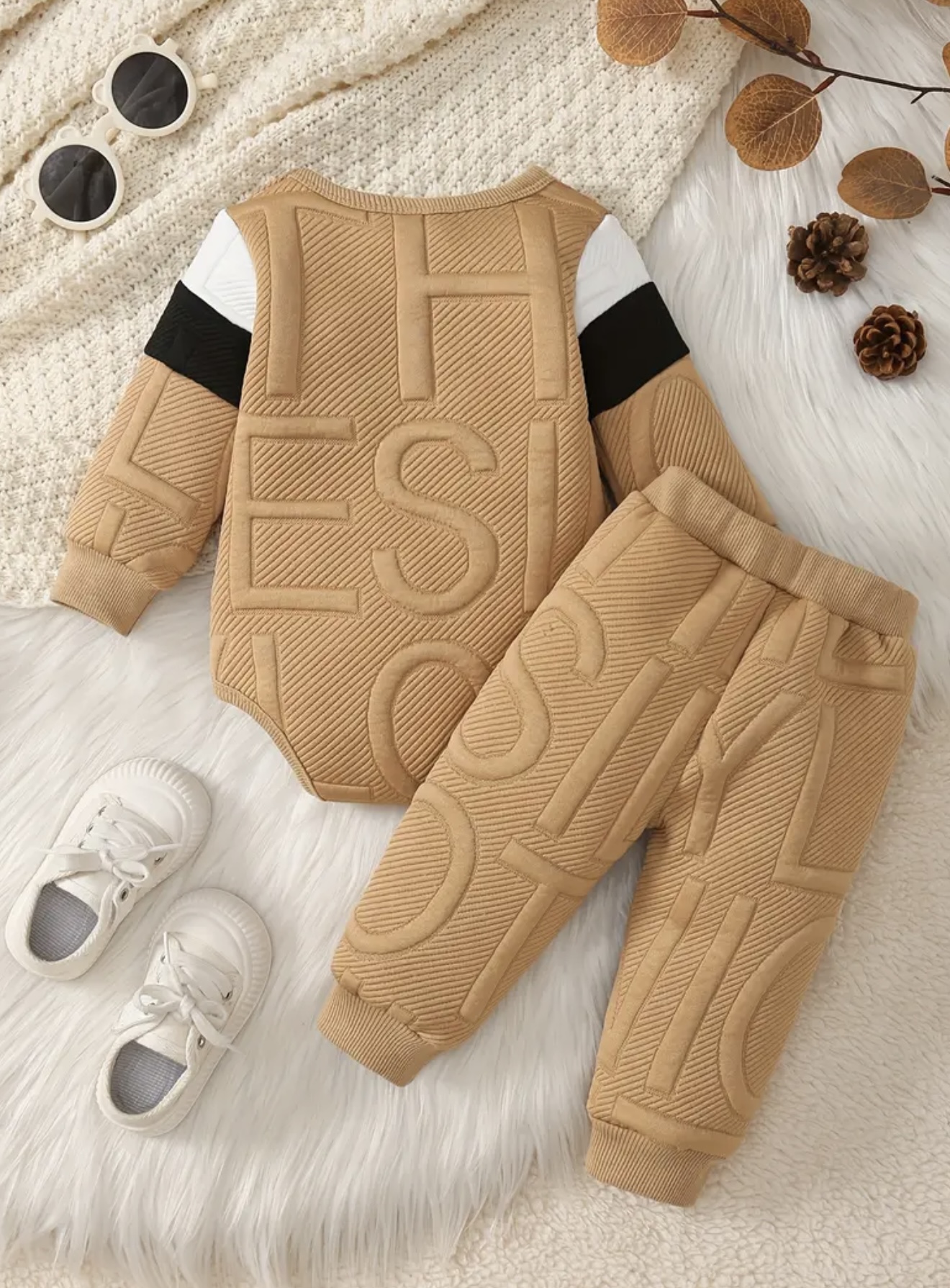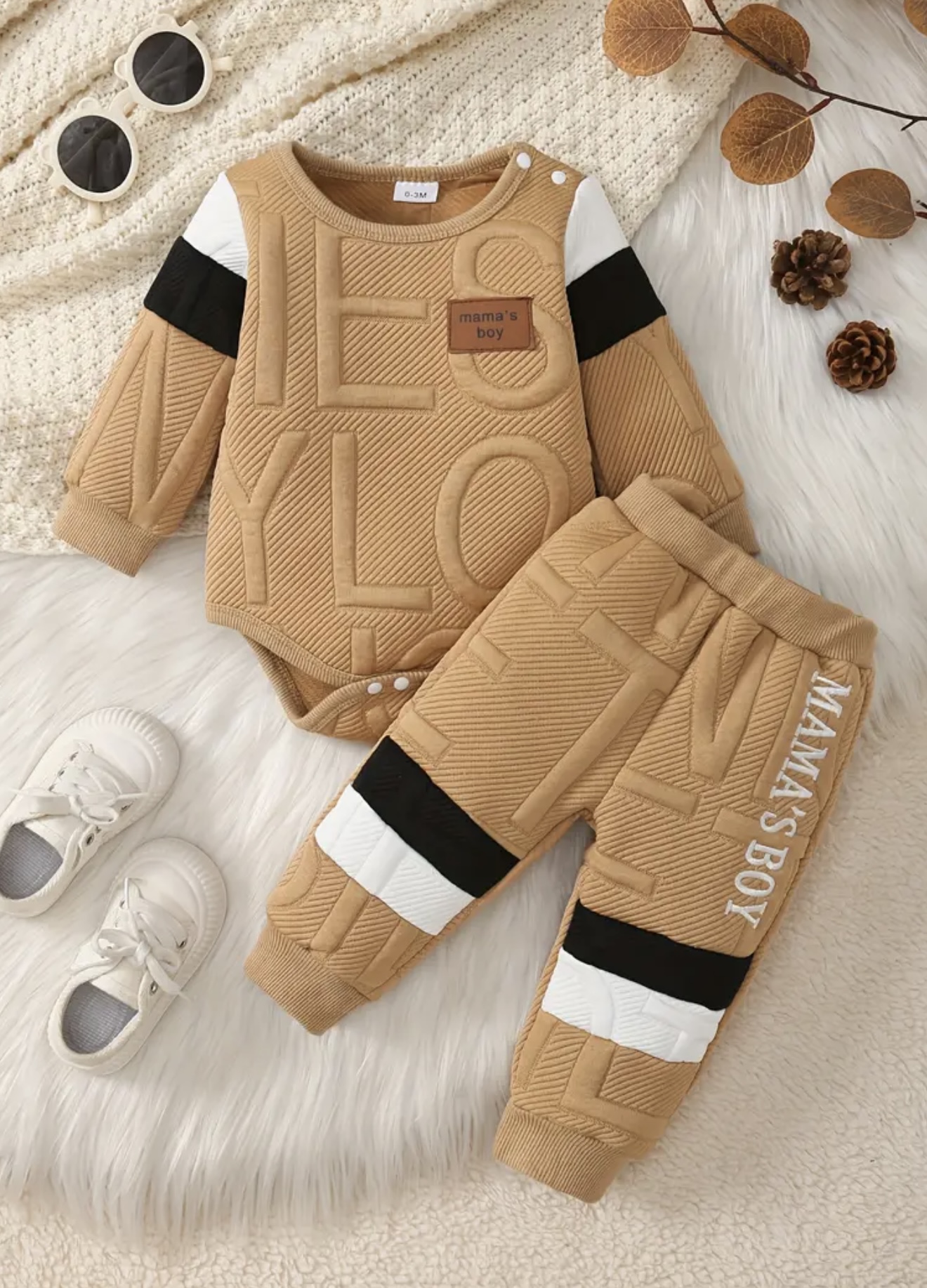 ست ۲ تکه نوزاد پسر شامل بادیسوت زمستانی و شلوار “MAMA’ BOY” – لباس راحتی با دکمه فشار، لباس گرم نوزاد پسر برای عکسبرداری و استفاده روزمره، قابل شستوشوی دستی (پاییز/زمستان)، مناسب برای نوزادان کوچک، ایدهآل برای فضای باز