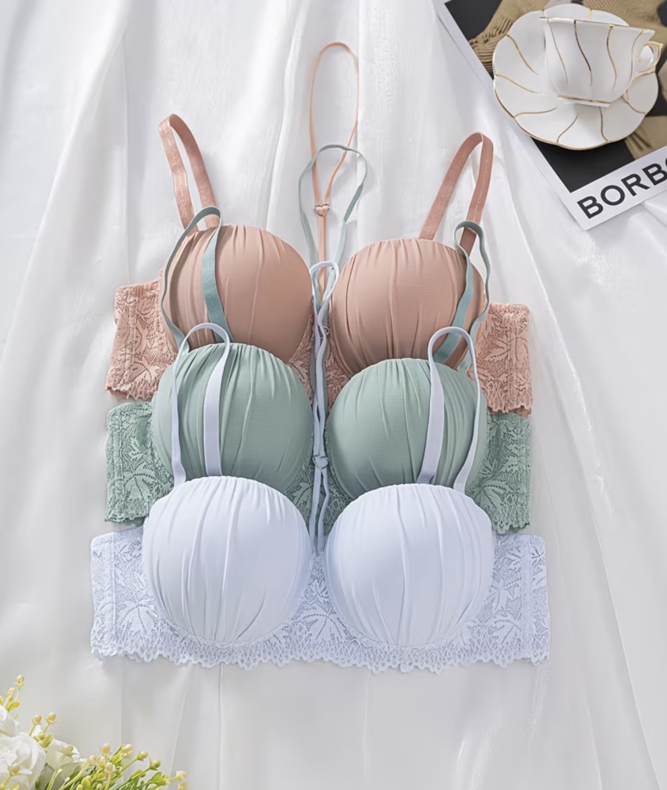ست ۳ تکه لباس زیر زنانه سوتین توری با کاپهای تنفسپذیر و طراحی پوشآپ ضد افتادگی