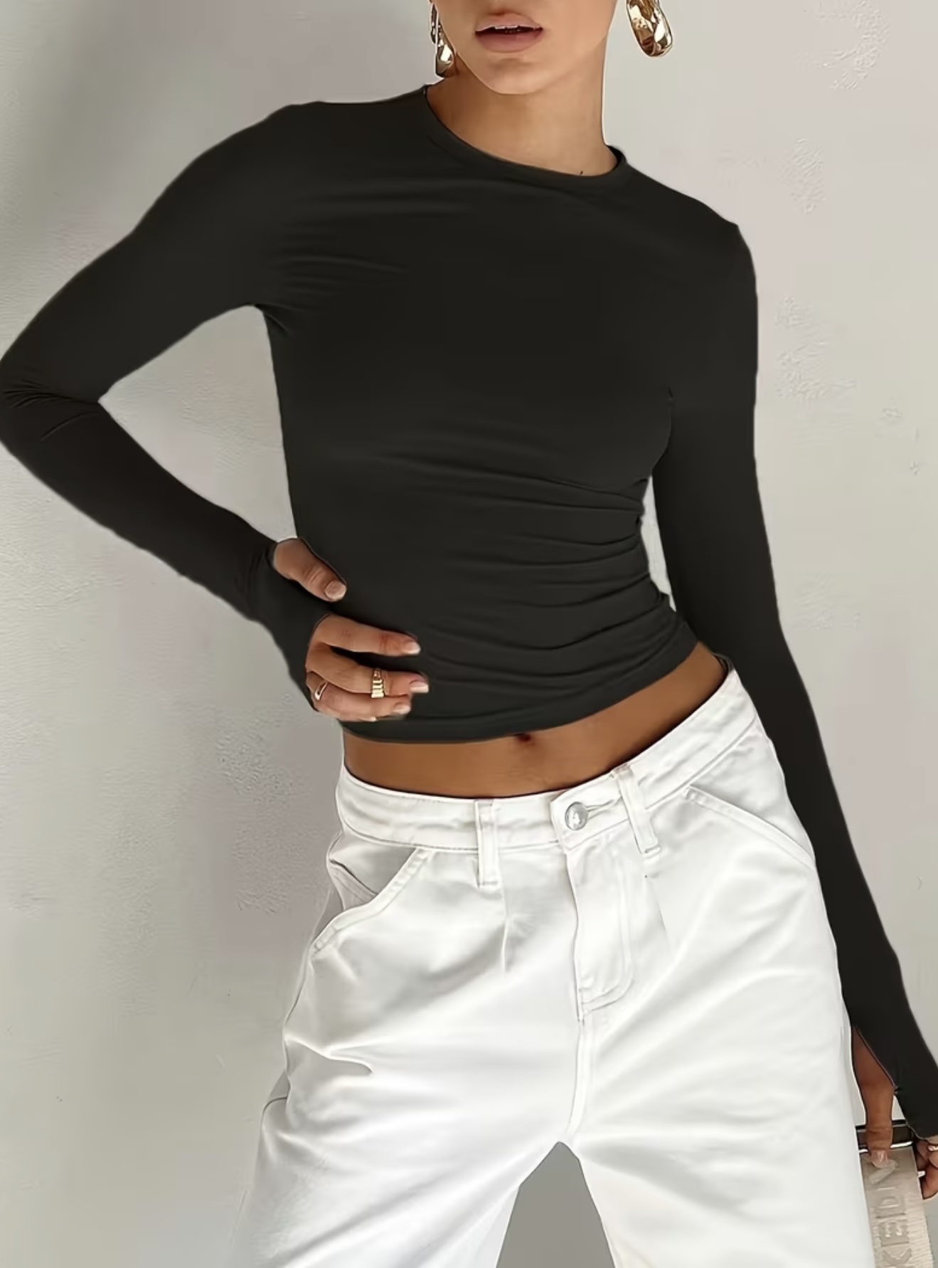ست ۳ عددی تیشرت زنانه آستین بلند جذب، یقه گرد با جزئیات دکمه روی شست، تنفسپذیر و راحت برای بهار، تابستان و پاییز، مناسب لایهپوشی، در رنگهای قهوهای، سفید و مشکی. طراحی شیک و مینیمال، بافت نرم و سبک، پارچه با کشسانی بالا، ضروری برای استایل کژوال و طرفداران مد، بالاتنه چندکاره و راحت