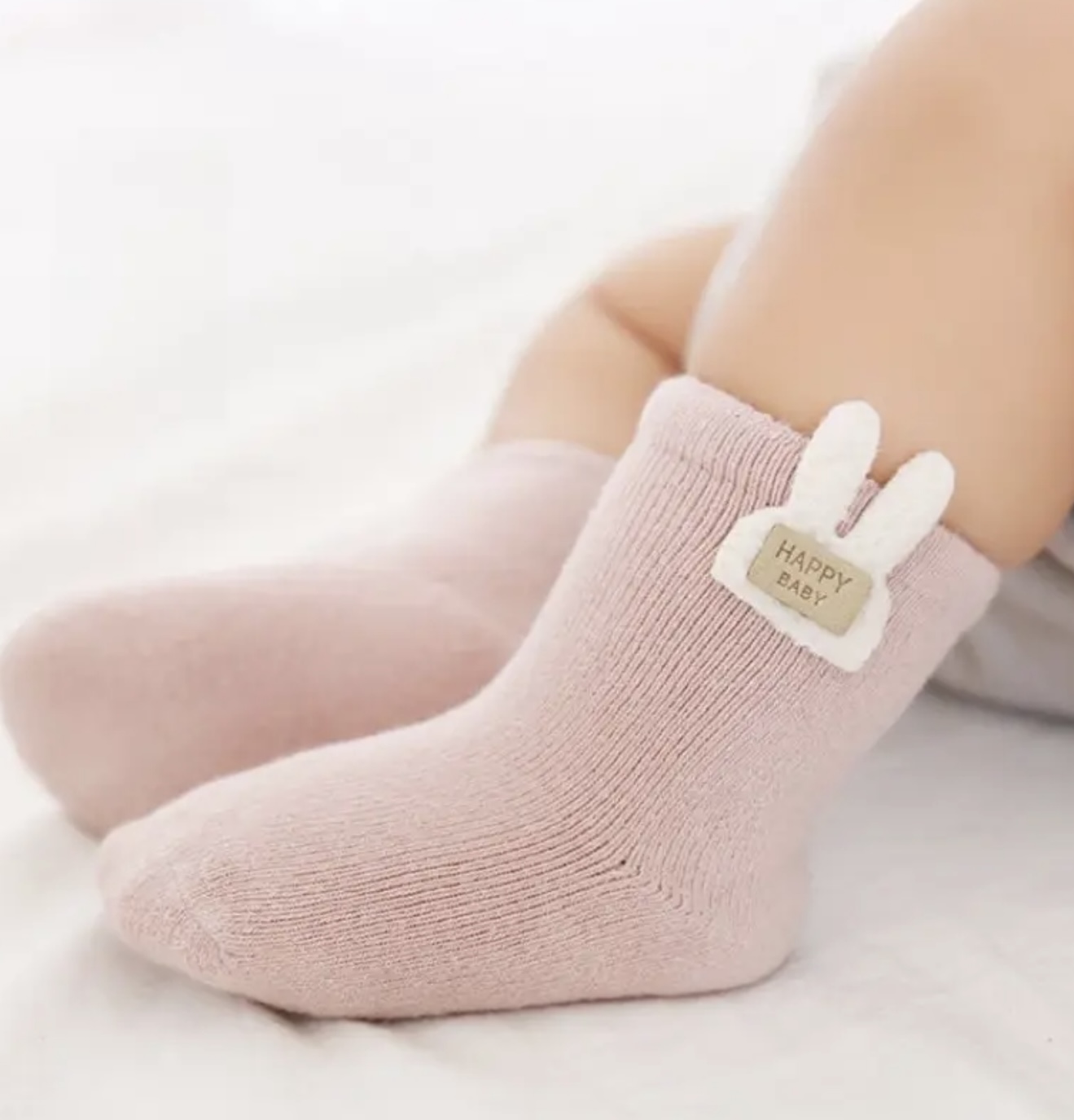 ست ۳ عددی جوراب صورتی طرح خرگوش، جوراب‌های نوزادی گرم پاییز و زمستان، بازیگوش و بامزه، از پارچه حوله‌ای نرم و لطیف، مناسب برای گرما و راحتی پاها