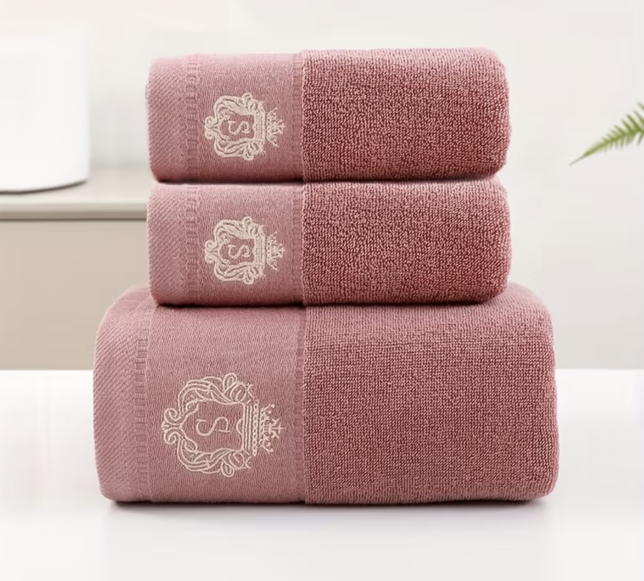 ست ۳ عددی حوله پنبهای خالص با طرح تاج (سایز S)