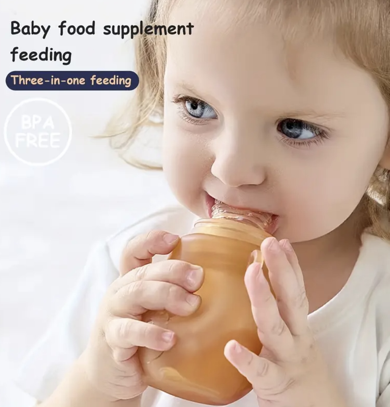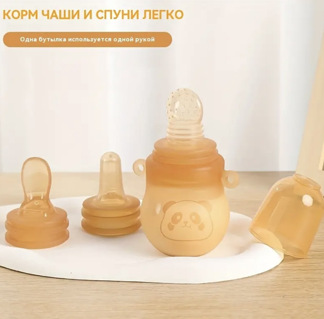 ست ۳ عددی خوراکیخوری سیلیکونی نوزاد با طرح پاندا کارتونی، شیشه تغذیه با پوره برنج، خوراکیخوری چندمنظوره برای نوزادان، هدیه مناسب برای نوزادان، شیشه شیر کودک
