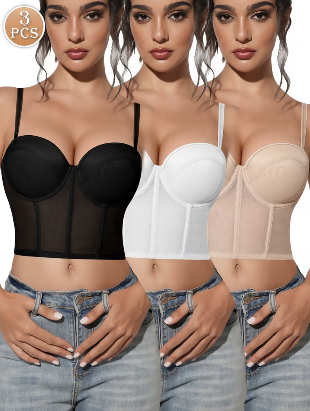 ست ۳ عددی سوتین (تاپ)زنانه توری، طراحیشده برای جلوگیری از افتادگی