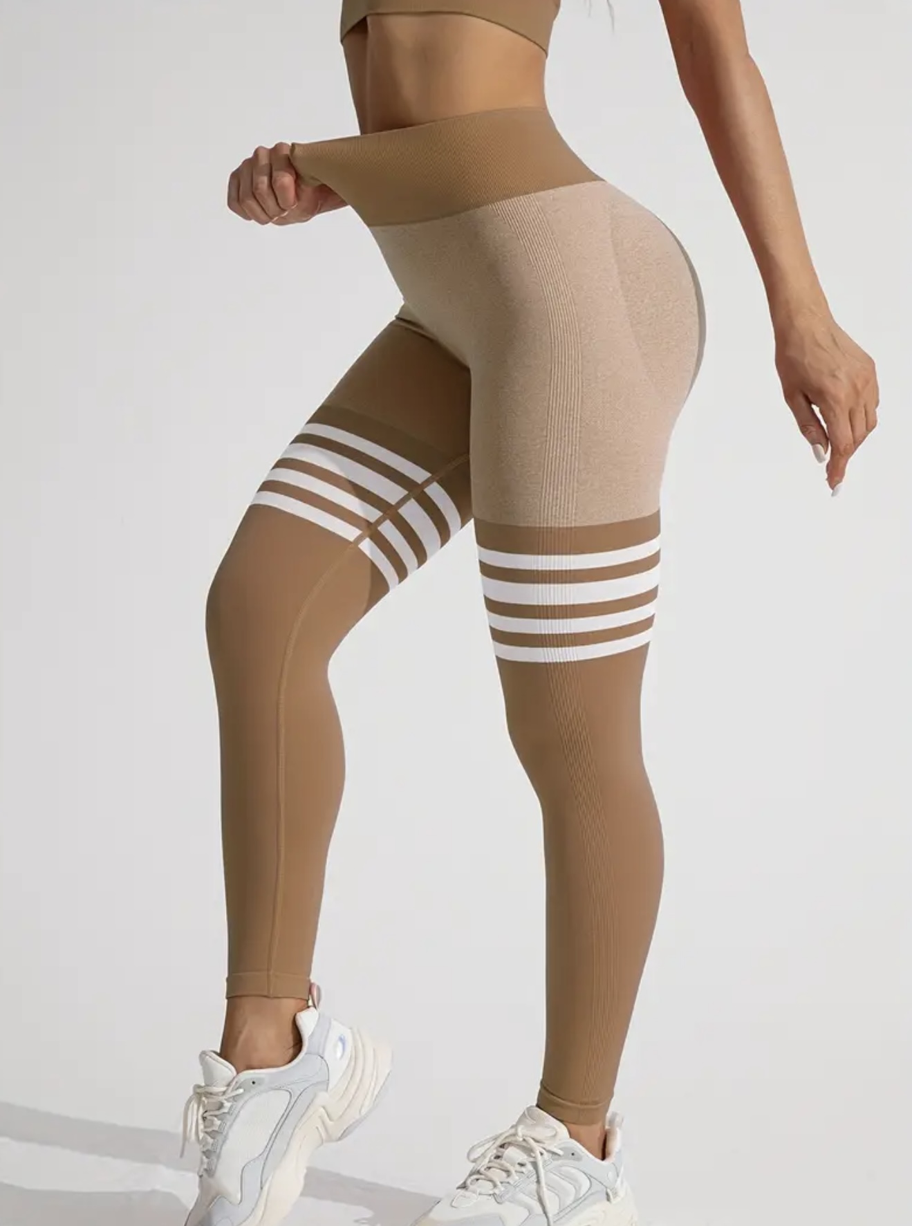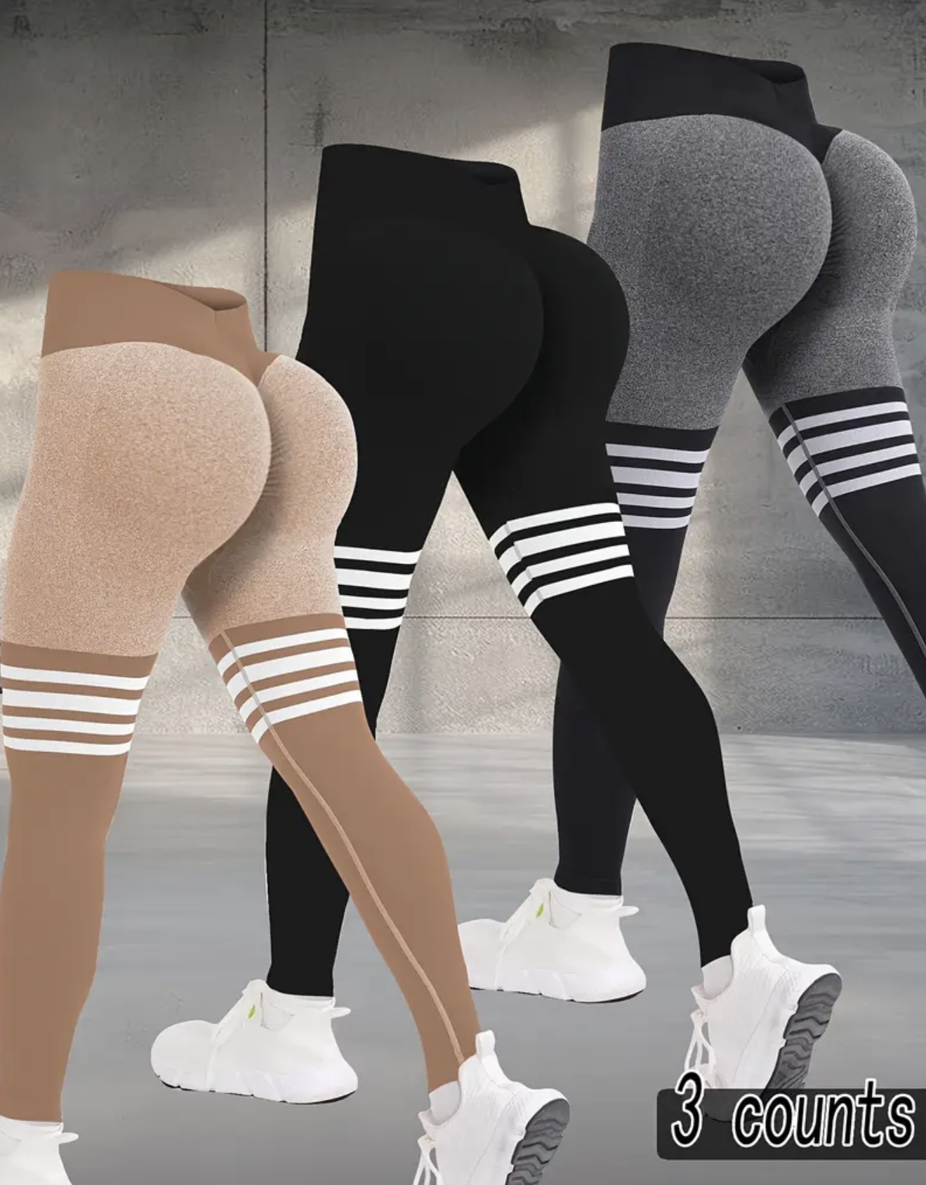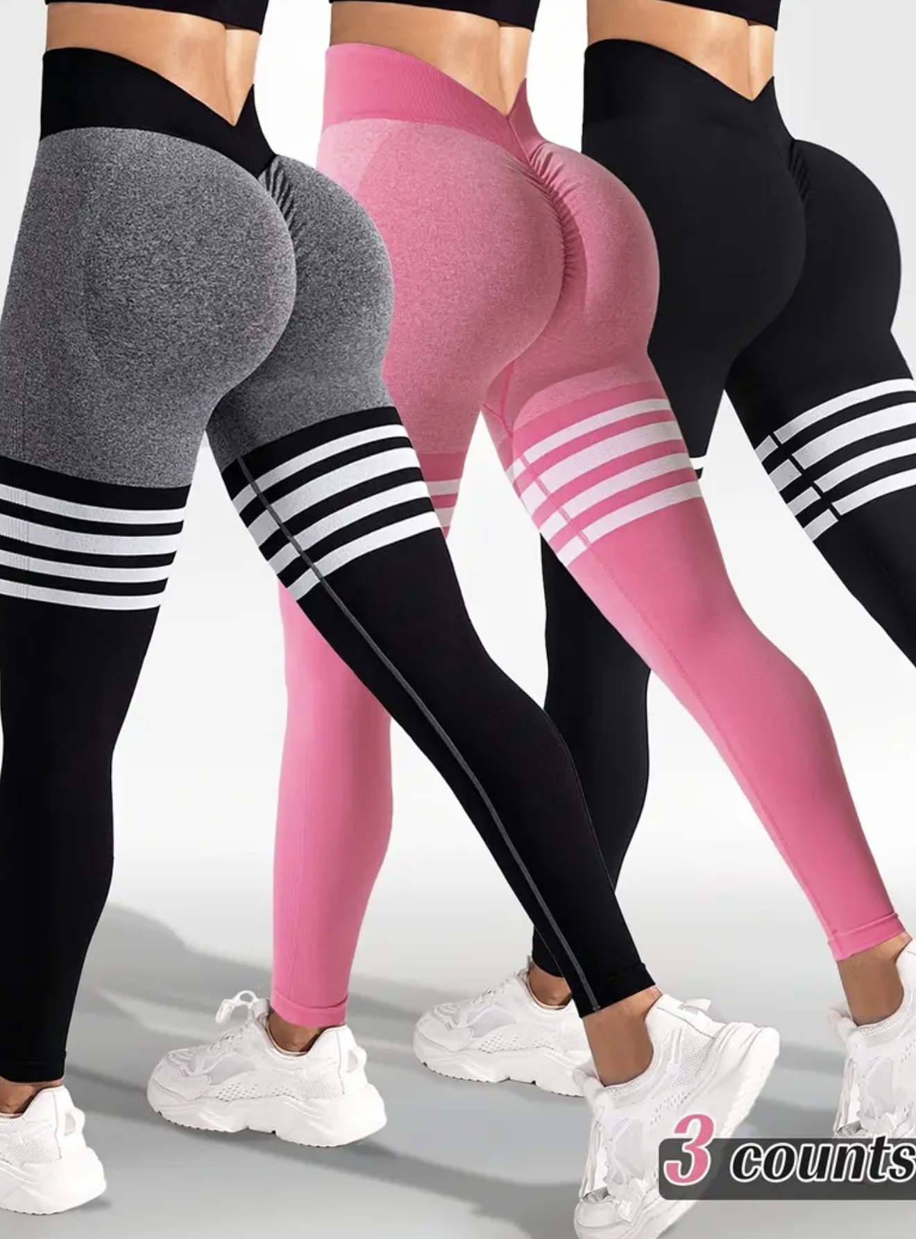 ست ۳ عددی لگ ورزشی زنانه بدون درز – لگهای یوگا با کشسانی بالا و فیت فشردهکننده، طراحی مدرن با نوارهای رنگی (Color-Block)، مناسب تمرین، باشگاه و فعالیتهای ورزشی