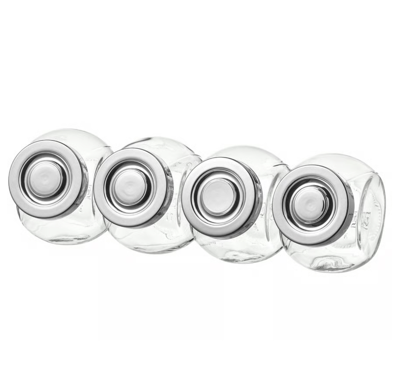 ست ۴ عددی شیشه ادویه شیشهای با درب به رنگ آلومینیومی