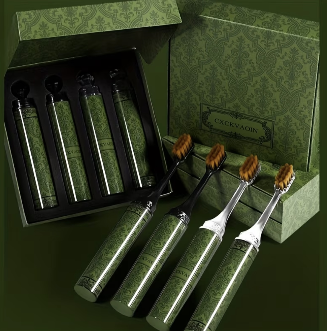 ست ۴ عددی مسواک لوکس با برسهای نرم – فوقظریف و فوقنرم برای محافظت از لثهها، با طراحی سبز و مدرن، مسواکهای قابل حمل و مناسب سفر برای آقایان و خانمها، قابل استفاده در منزل و خارج از خانه، همراه با نگهدارنده مسواک، طراحی شیک و بادوام