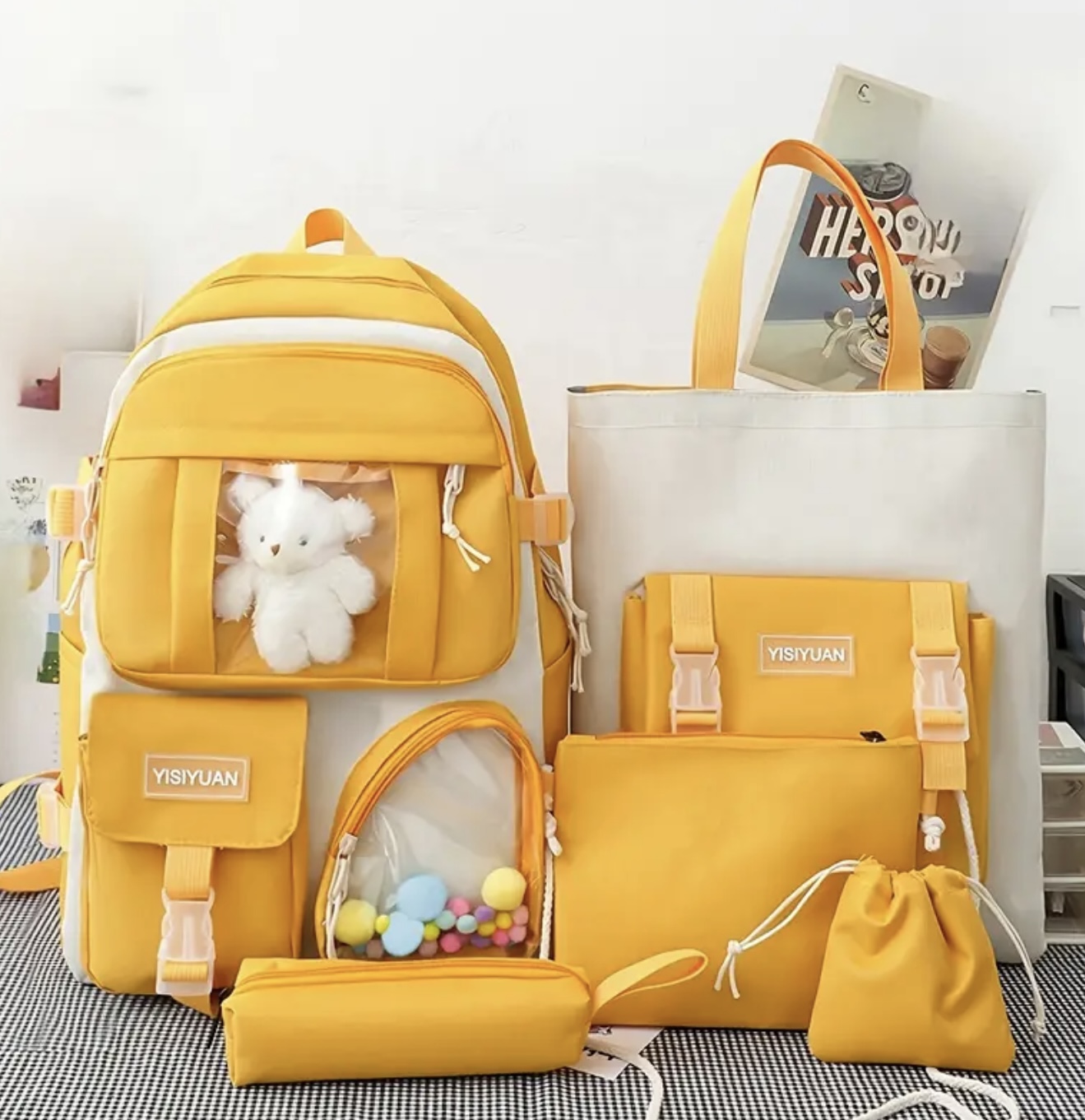 ست ۵ تکه کولهپشتی بامزه و فشن – چندکاره، ساده و مقاوم، مناسب رفتوآمد در دانشگاه و محیطهای روزمره