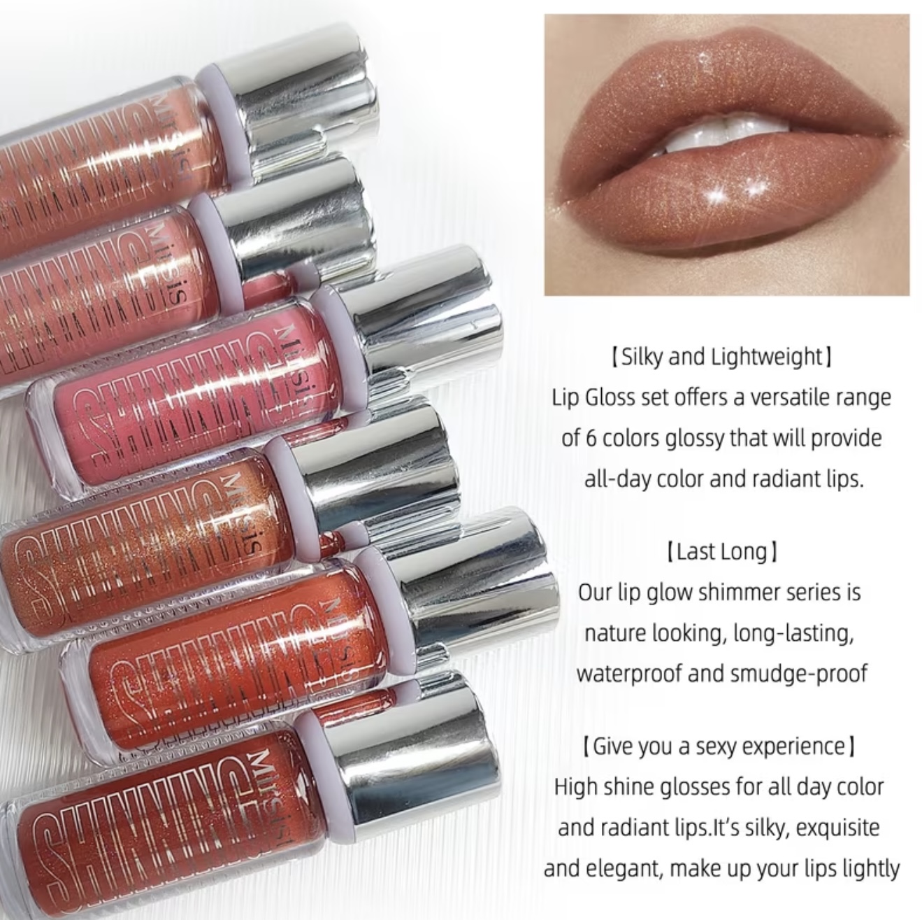 ۶ رنگ برق لب] برق لب مایع درخشان در ۶ رنگ
