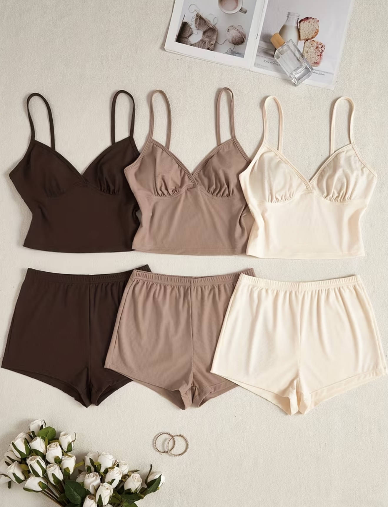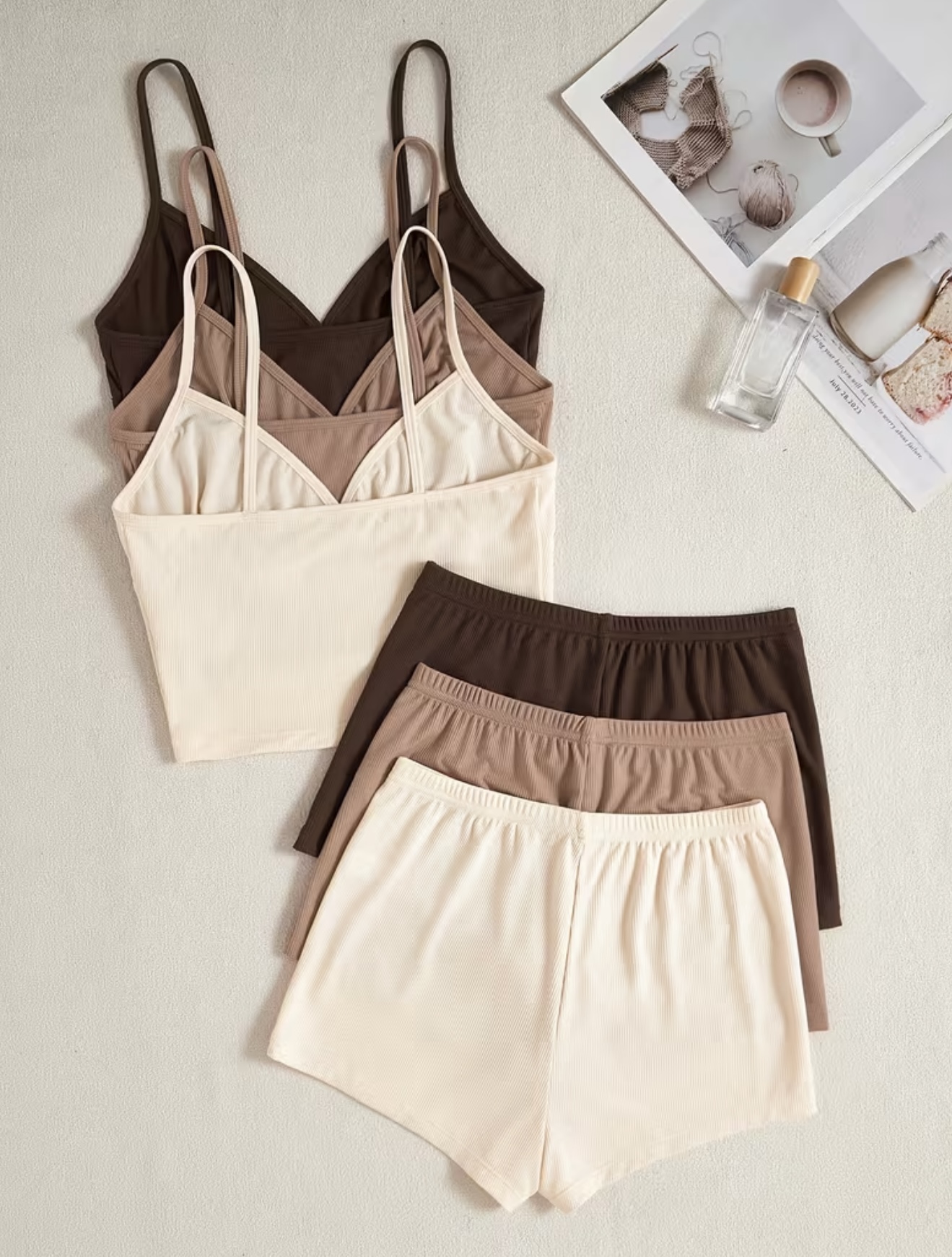 ست ۶ تکه لباس راحتی زنانه شامل تاپ بندی و شورت