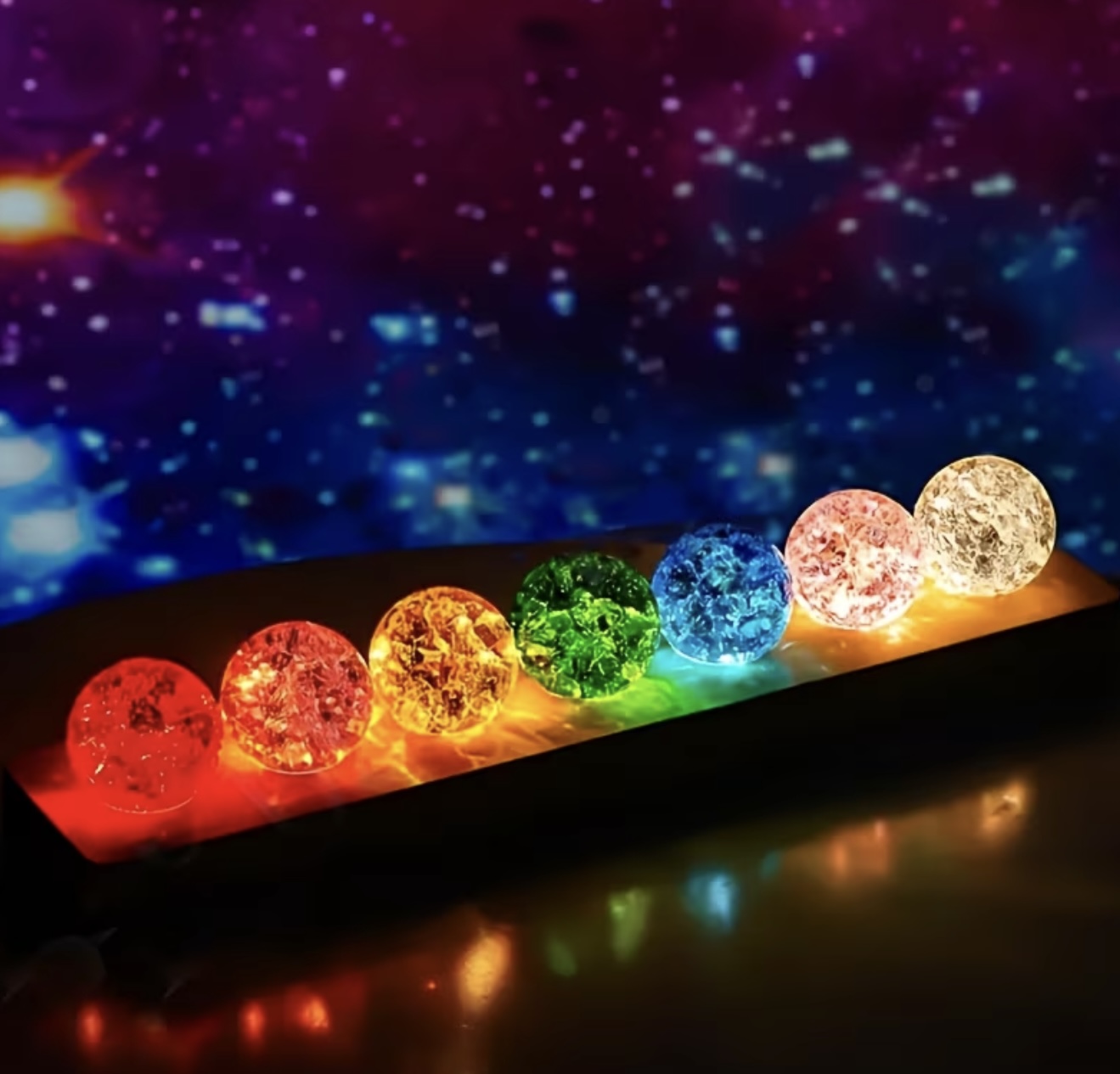 ست ۹ عددی توپ کریستالی شیشهای ترکخورده با نور LED شب