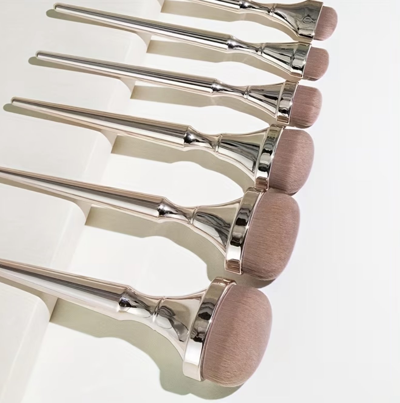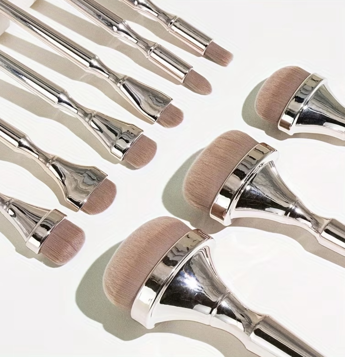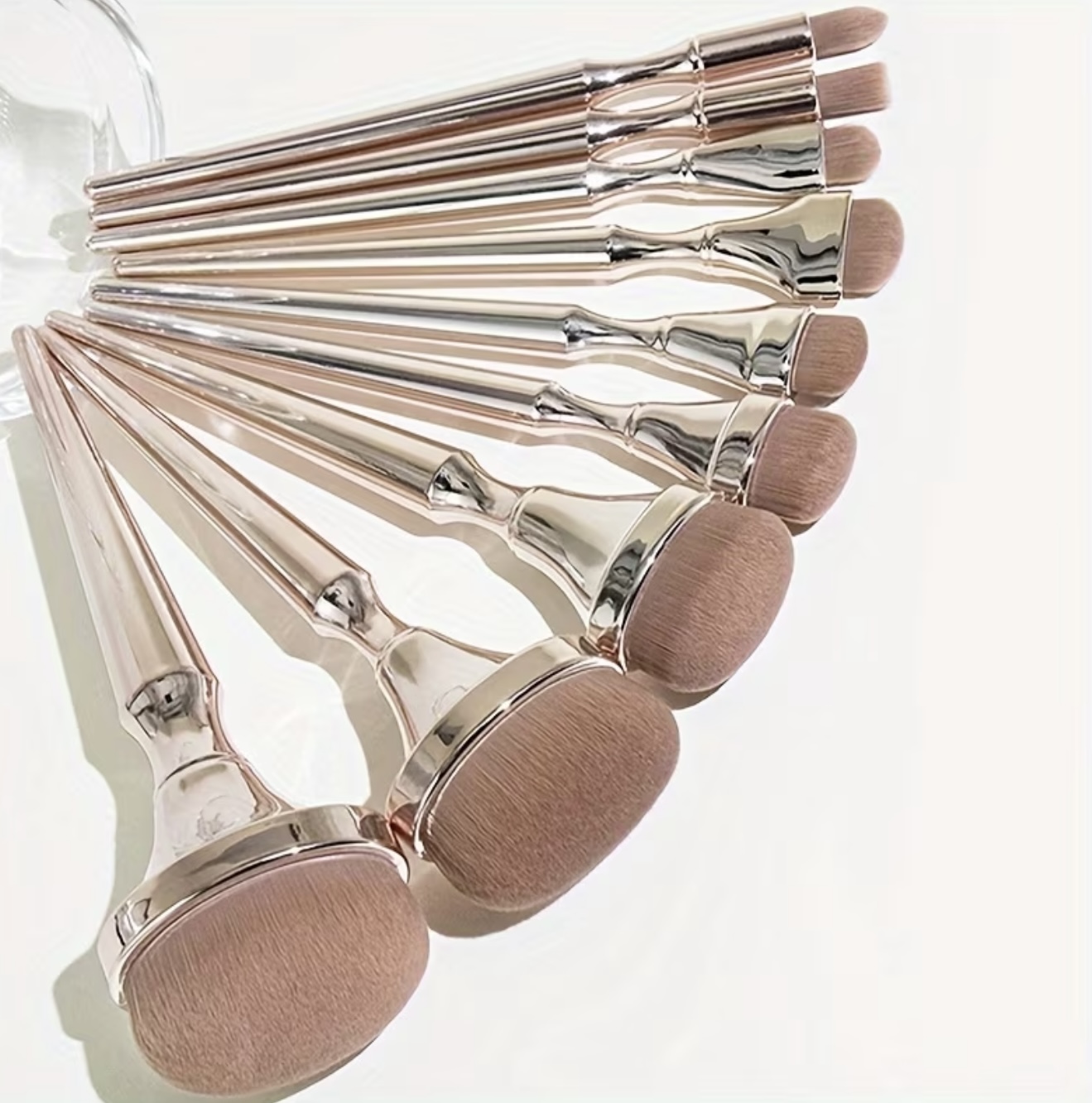 ست ۹ عددی قلممو آرایش ، قلمموهای سبک مسواک با دستههای آبکاریشده لوکس، مناسب پودر آزاد و رژگونه