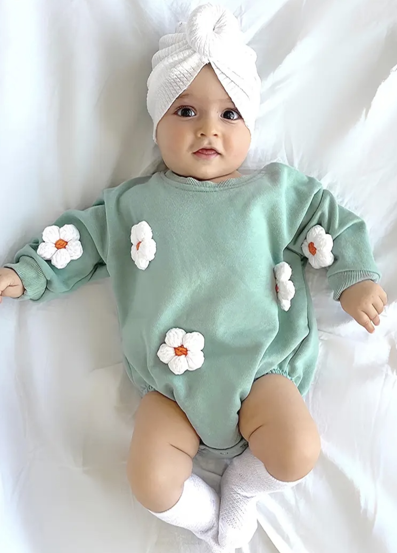 لباس نوزاد مناسب دختر و پسر، با آستین بلند و دکمه فشاری برای تعویض آسان پوشک. قابل شستشو در ماشین لباسشویی، مناسب برای عکاسی، استفاده روزمره و مناسبت‌های خاص. مناسب فصل بهار و پاییز، با طرح گل‌دار، بسیار راحت و لطیف. ایده‌آل برای استفاده در فضای باز.