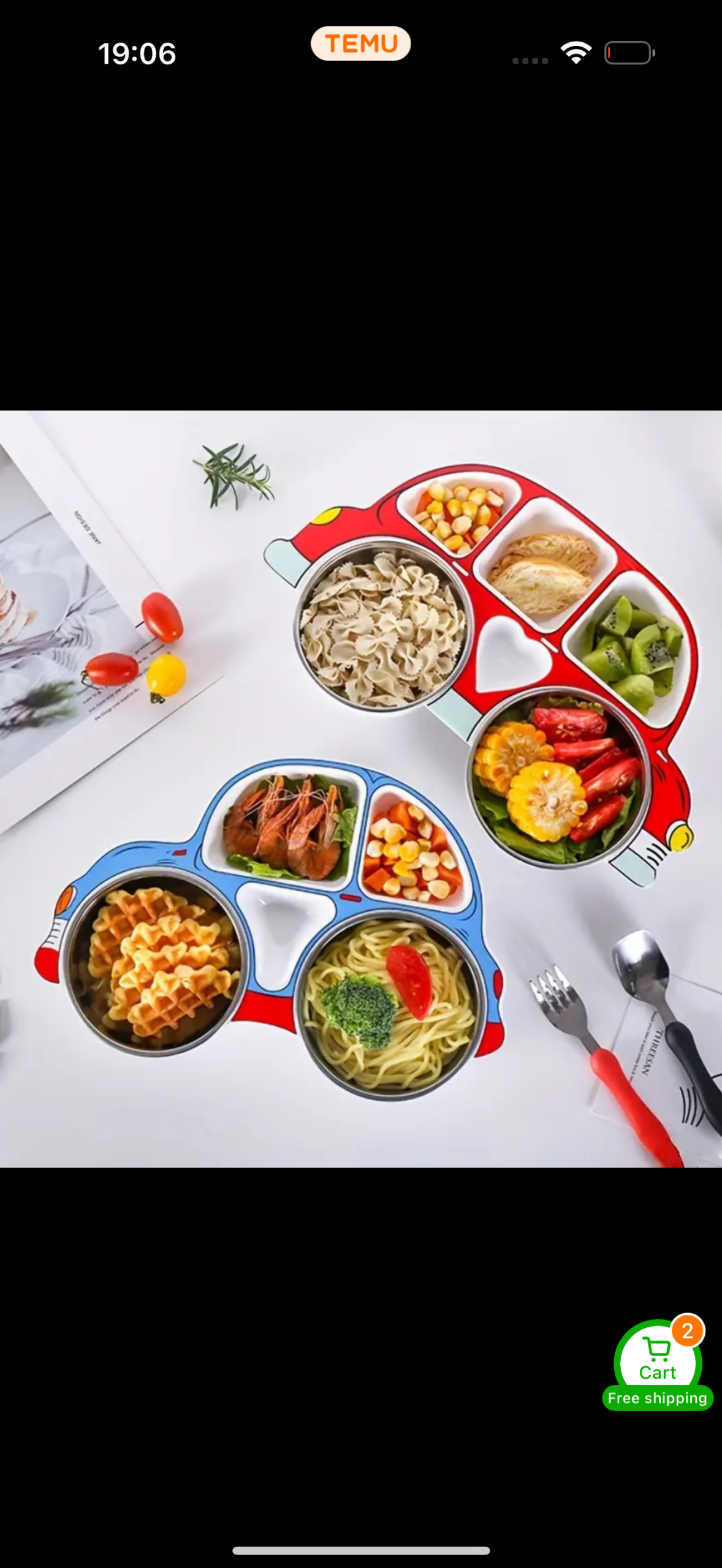 سرویس غذاخوری ۴ تکه استیل طرح ماشین کارتونی به‌همراه درب، مقاوم و ضدضربه (ضد افتادن)، مناسب استفاده در خانه و فضای باز؛ شامل ۱ بشقاب تقسیم‌بندی‌شده و ۲ کاسه