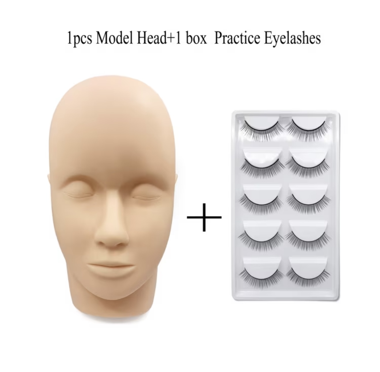 سر مانکن تمرینی بههمراه ۱ جعبه (۵ جفت) مژه مصنوعی تمرینی برای آموزش