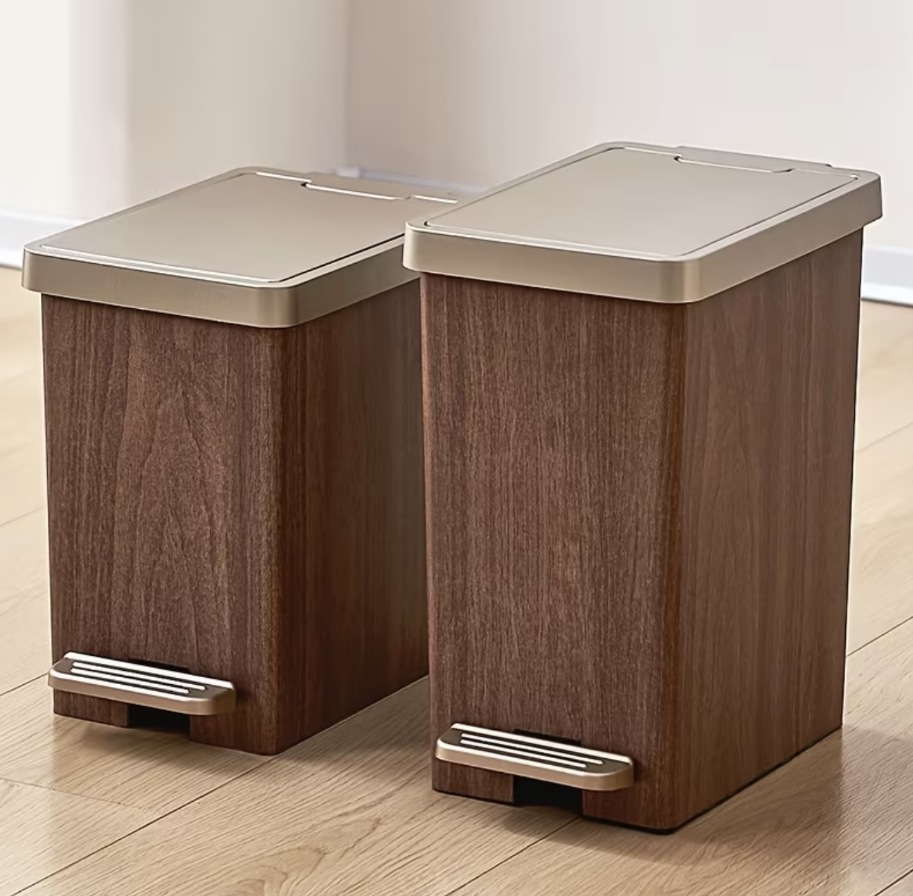 سطل زباله با ظرفیت بالا – دارای طراحی پدالی با رنگ بافت چوبی روشن و تمیز