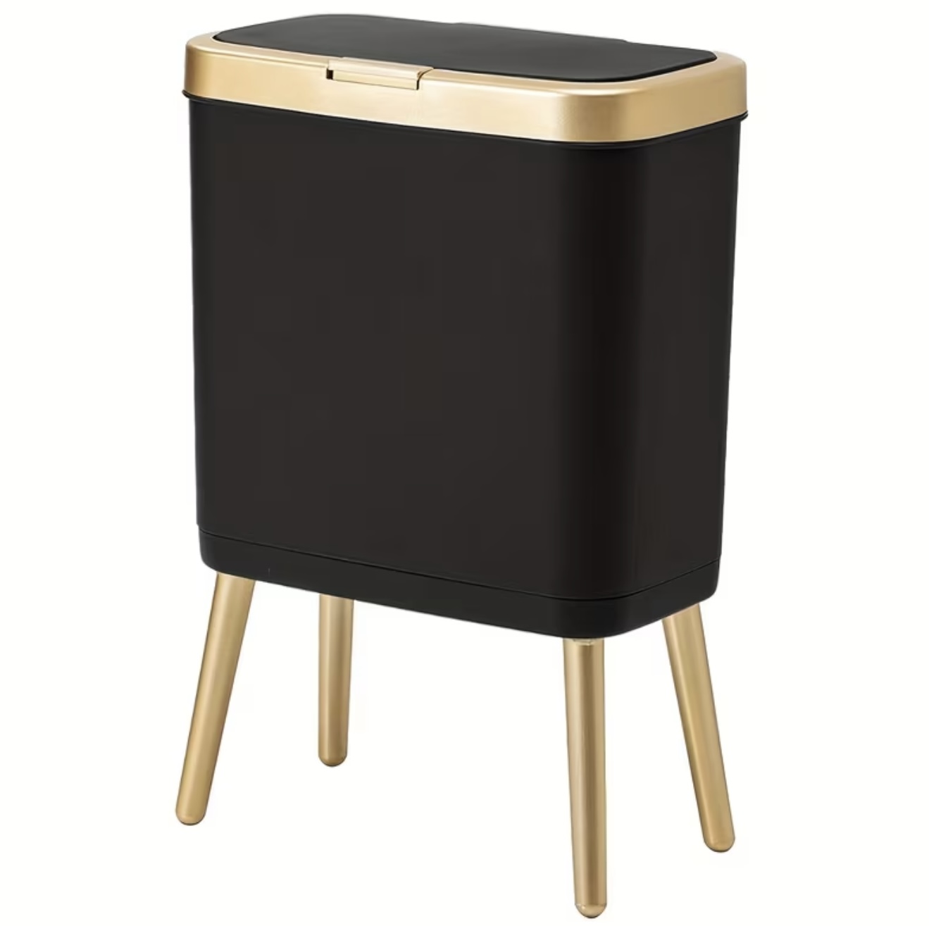 سطل زباله فلزی سفید پدالی با جزئیات طلایی – کنترل بو، ظرفیت بالا