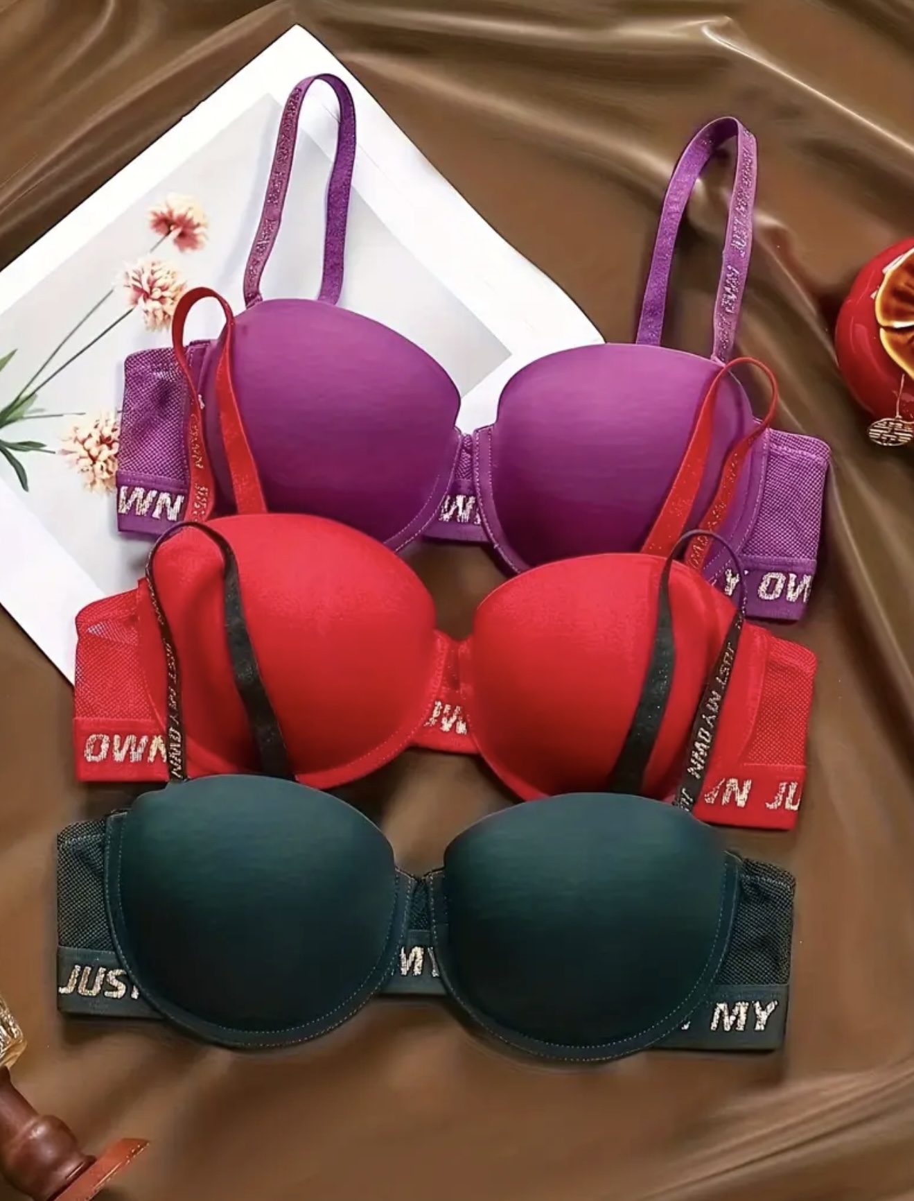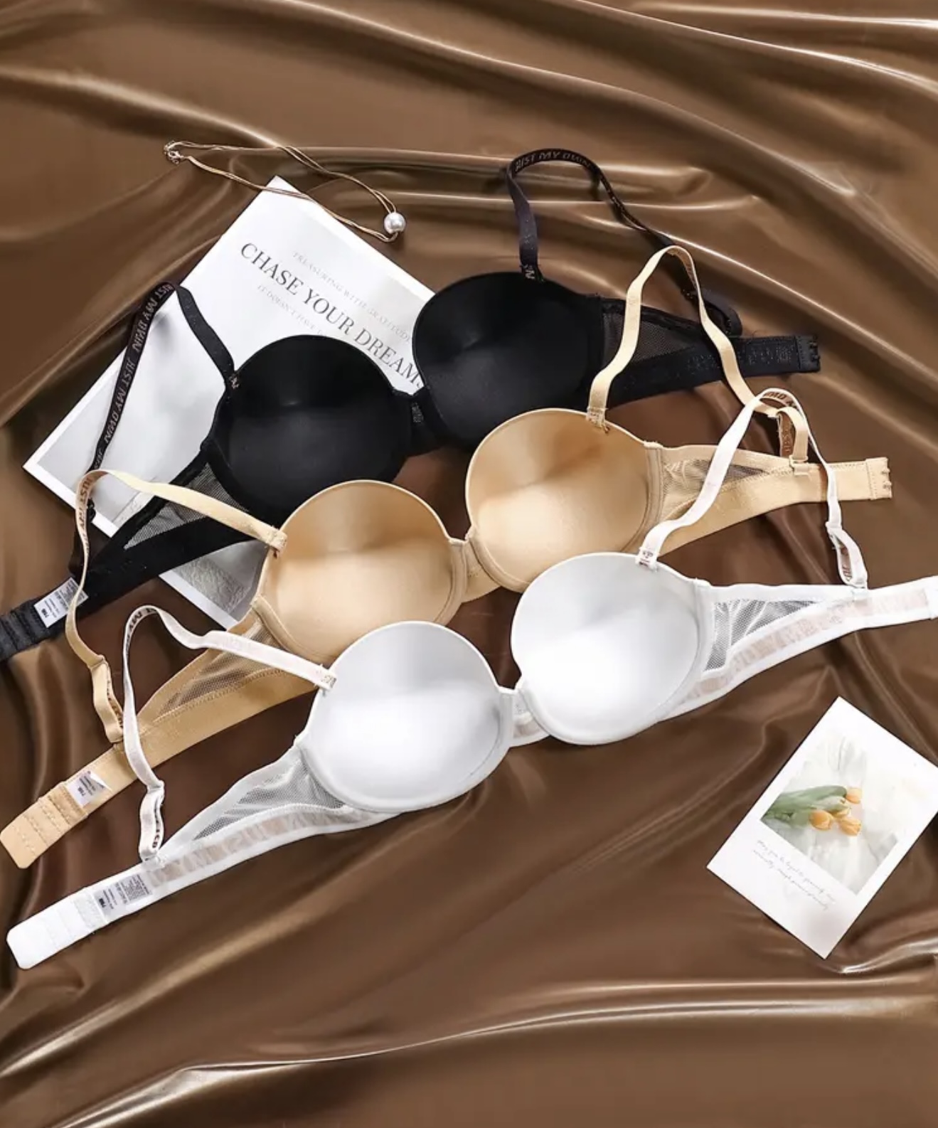 & Free Shippingسه عدد سوتین زنانه با کاپ قالبدار صاف