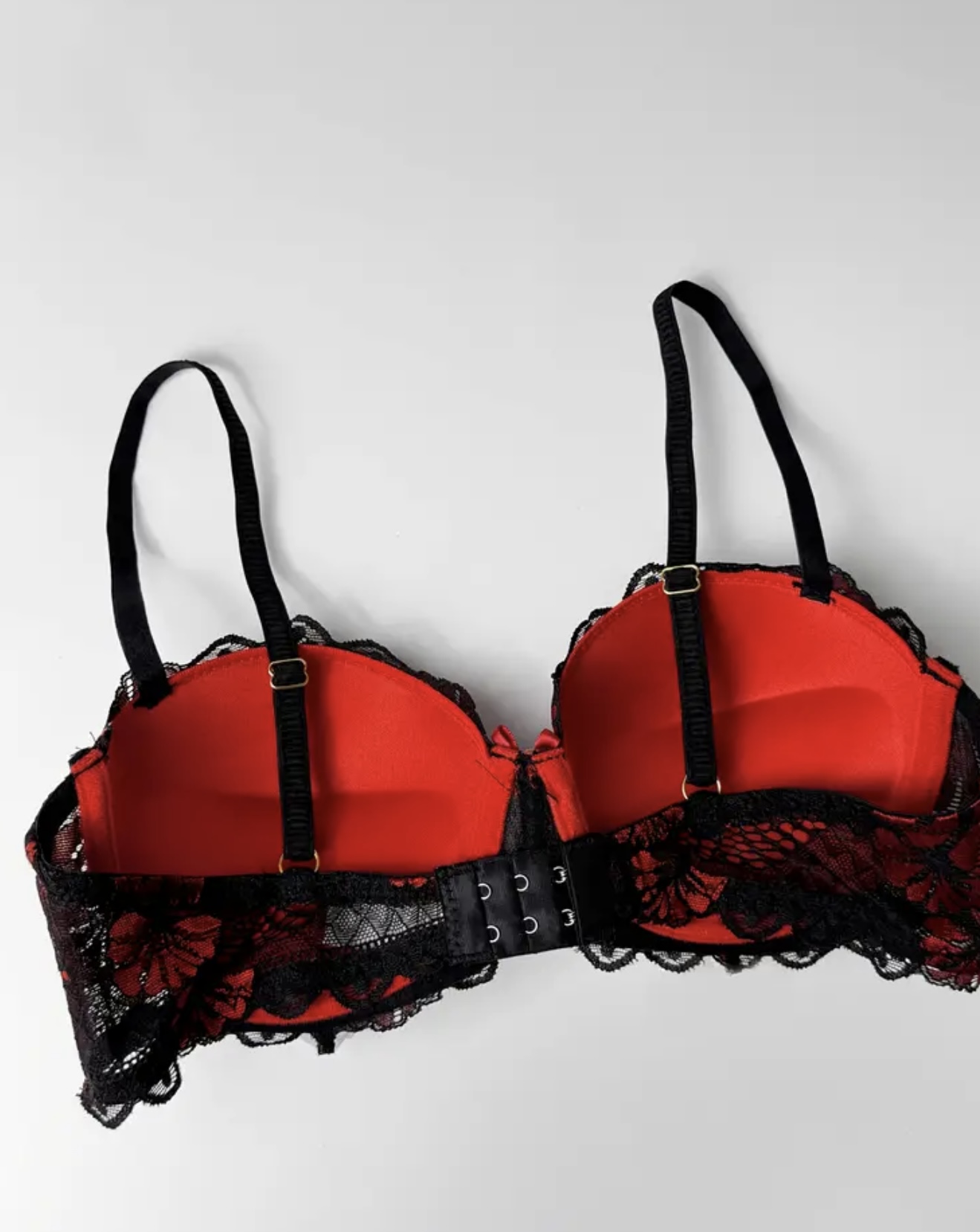 سوتین پوش آپ زنانه قرمز و شیک با توری گلدار