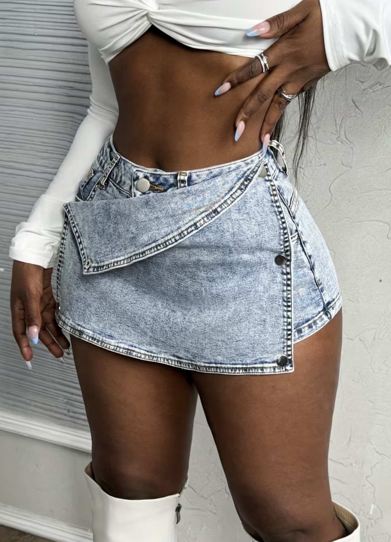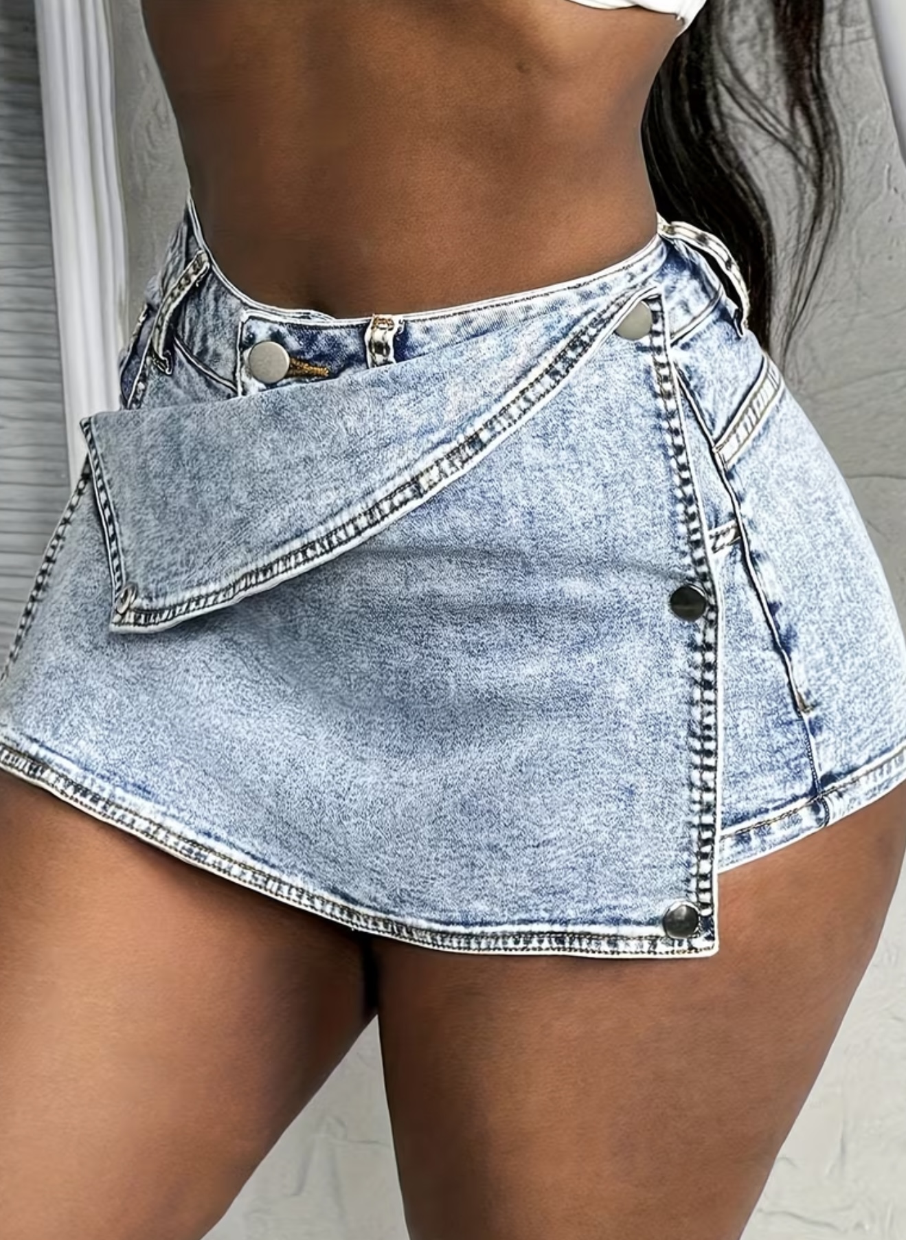 & Free Shippingشلوارک جین زنانه کشی با دکمه جانبی،