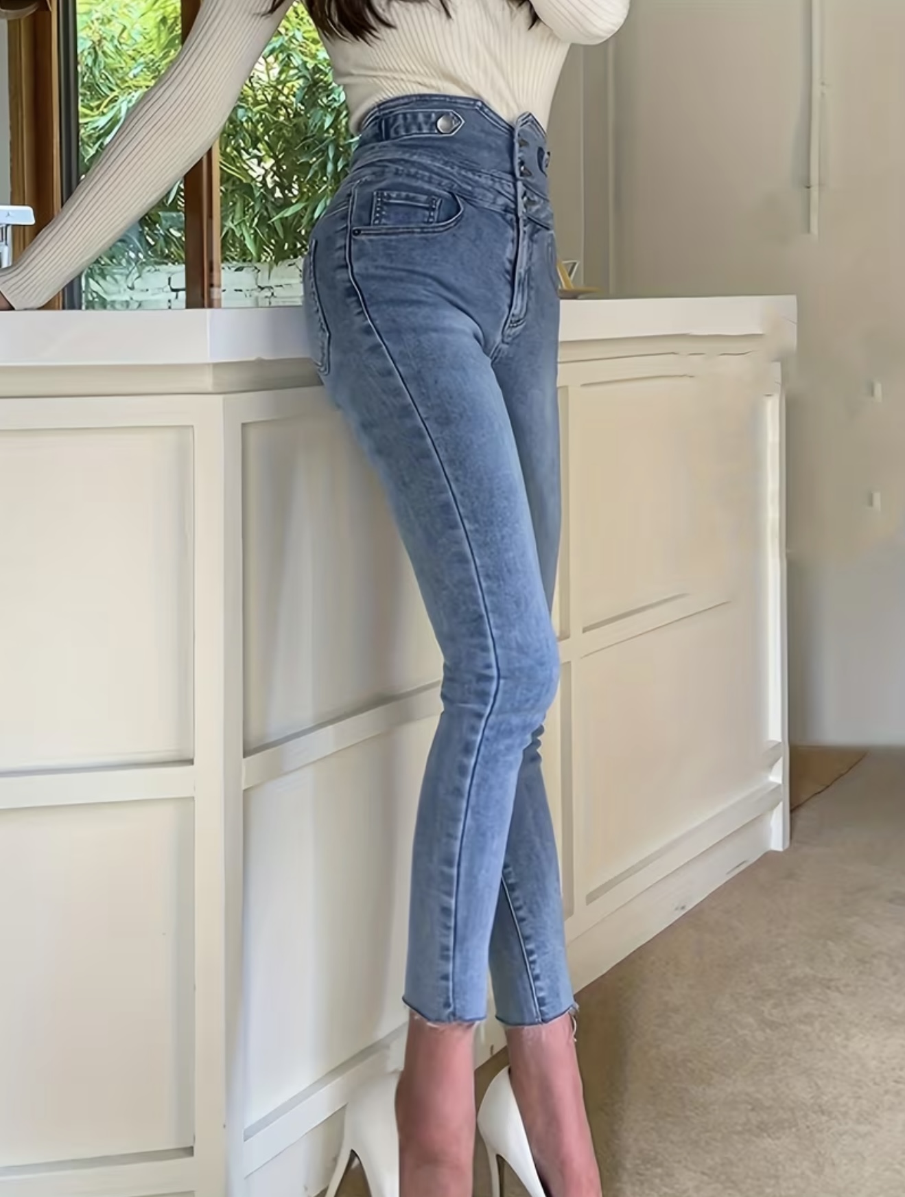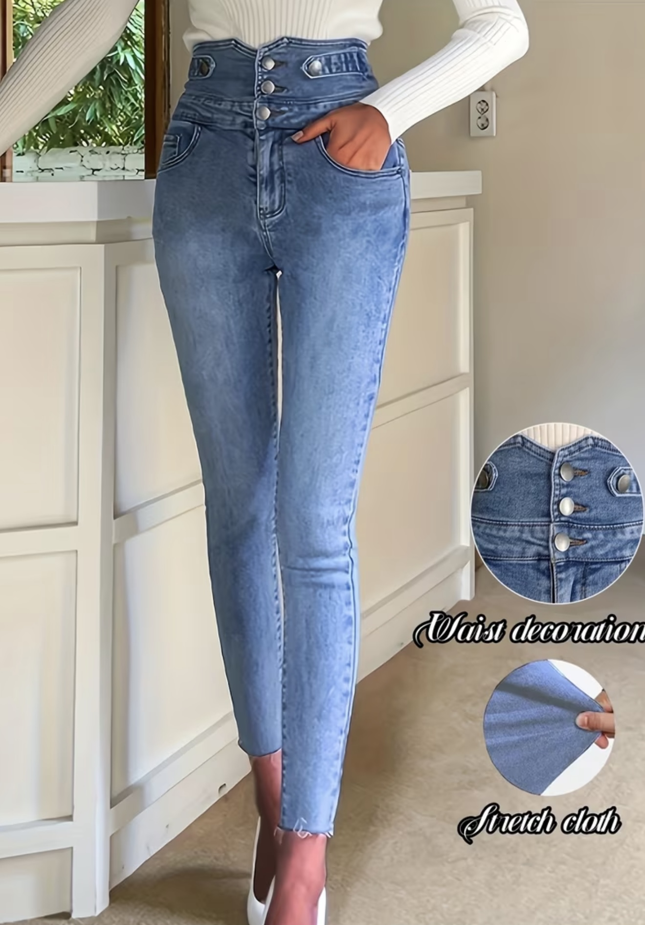 شلوار جین زنانه جذب با فاق بلند – از جنس دنیم کشی