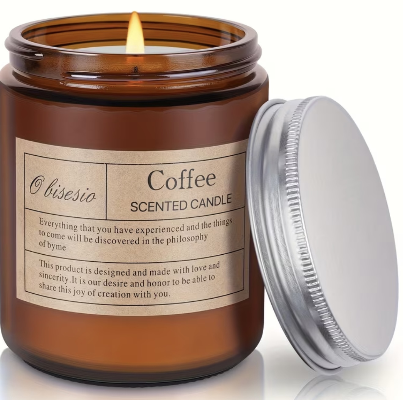 شمع شیشهای بزرگ معطررایحه قابل انتخاب: قهوه،چوب،لوندر،و مخصوص،لیمو، زمان سوخت بسیار طولانی: بیش از ۱۲ ساعت