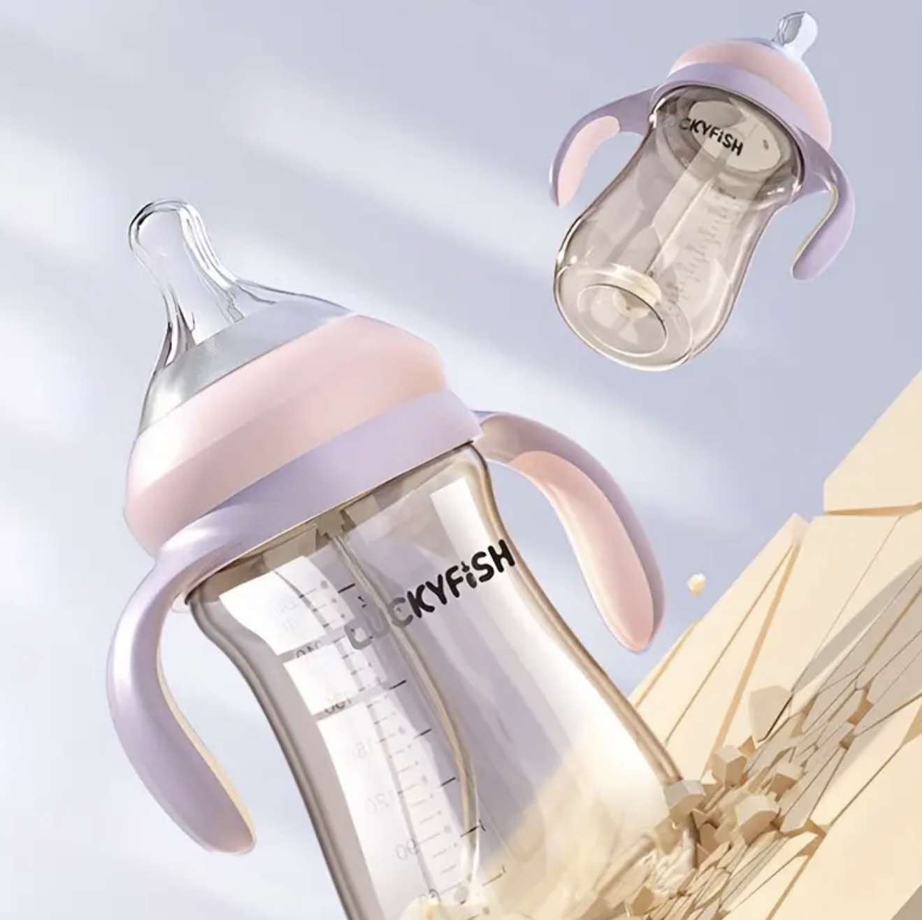 [ست ۲ عددی شیشه شیر] شیشه شیر ۱ یا ۲ عددی با دسته، از جنس پلاستیک PP، مناسب کودکان نوپا | مناسب آب و شیر خشک