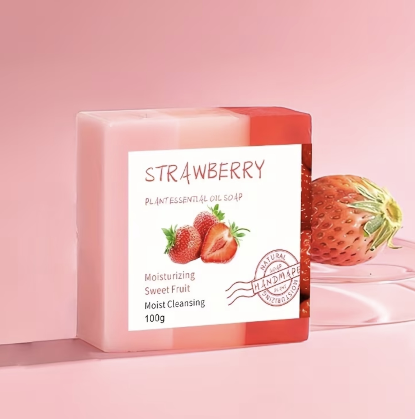 & Free Shippingصابون دستساز ۱۰۰ گرمی با عصاره و روغن ضروری توتفرنگی