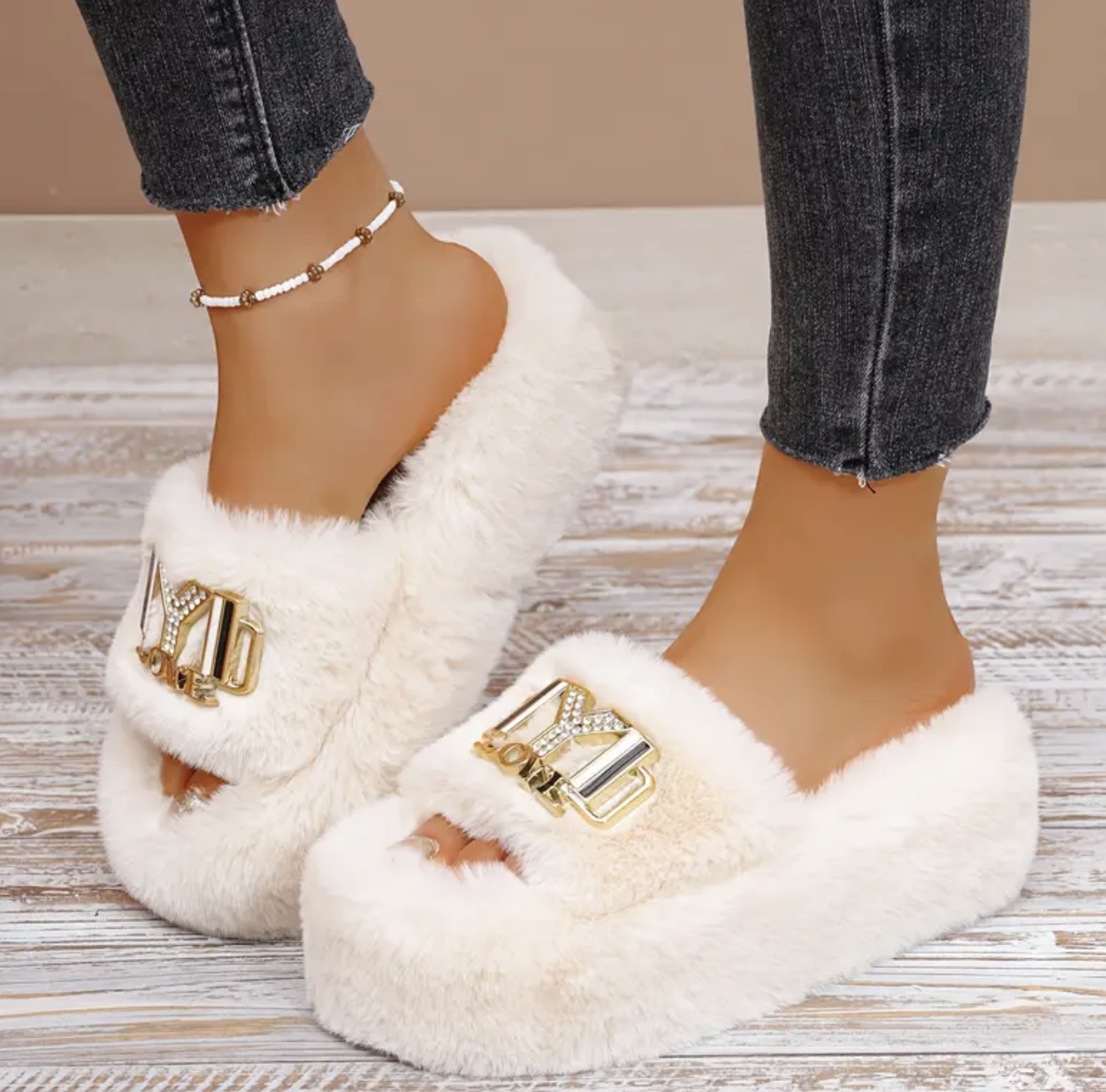 صندل خزدار زنانه مد روز با کفی ضخیم و بلندکننده قد