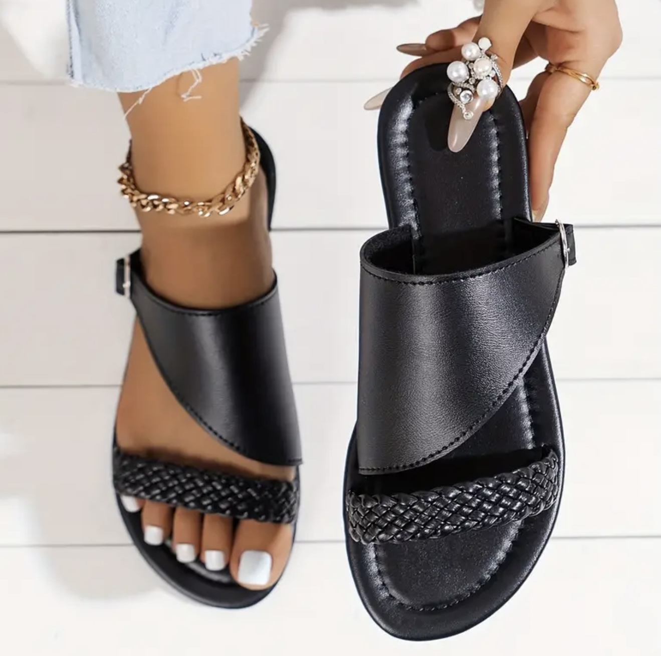 صندل راحت با بند بافته‌شده تک‌رنگ