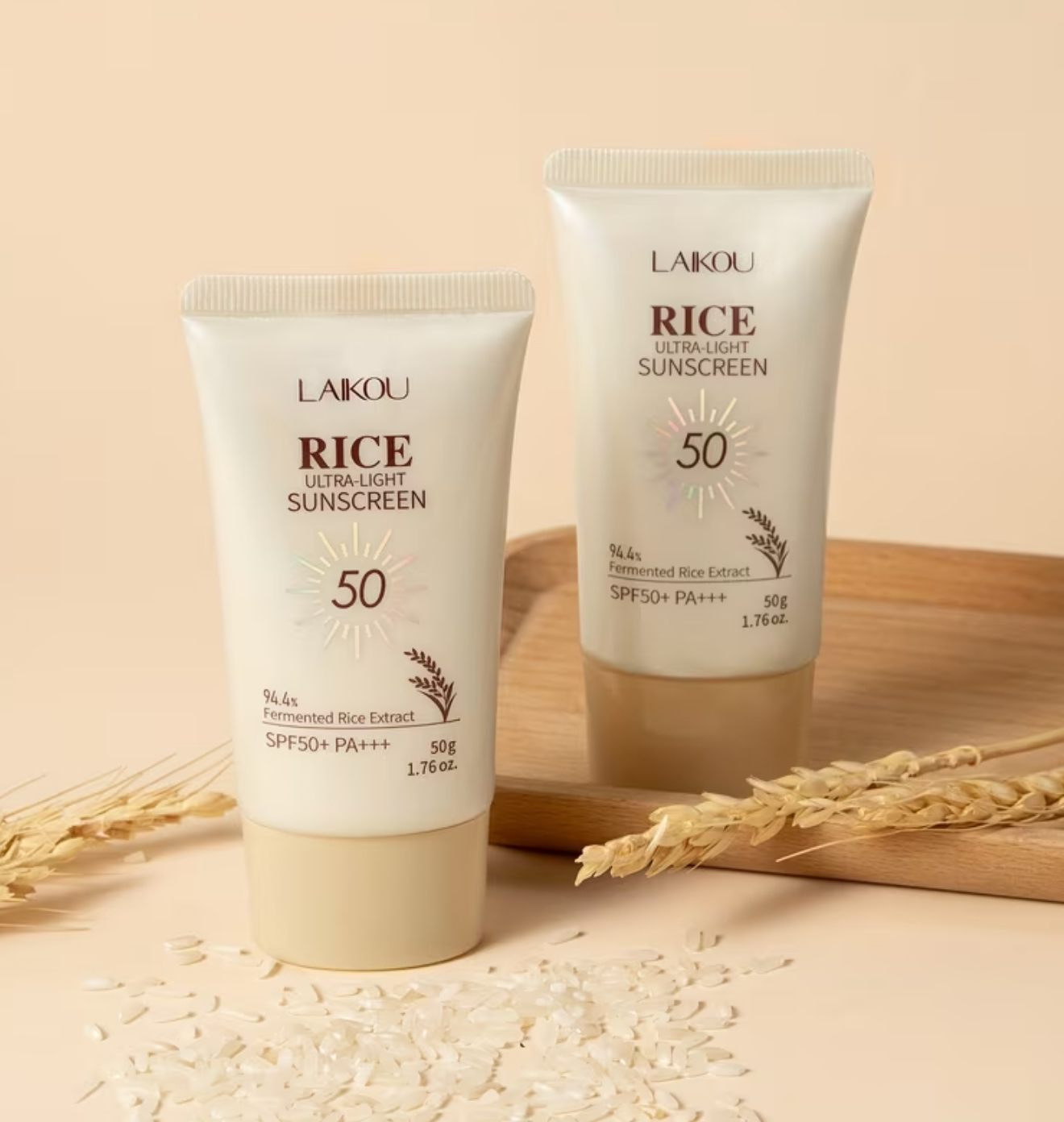 ضدآفتاب فوقسبک حاوی ۹۴.۴٪ عصاره برنج، مقاوم در برابر آب، ماندگار، مناسب برای یکنواخت کردن رنگ پوست، قابل استفاده برای صورت و بدن