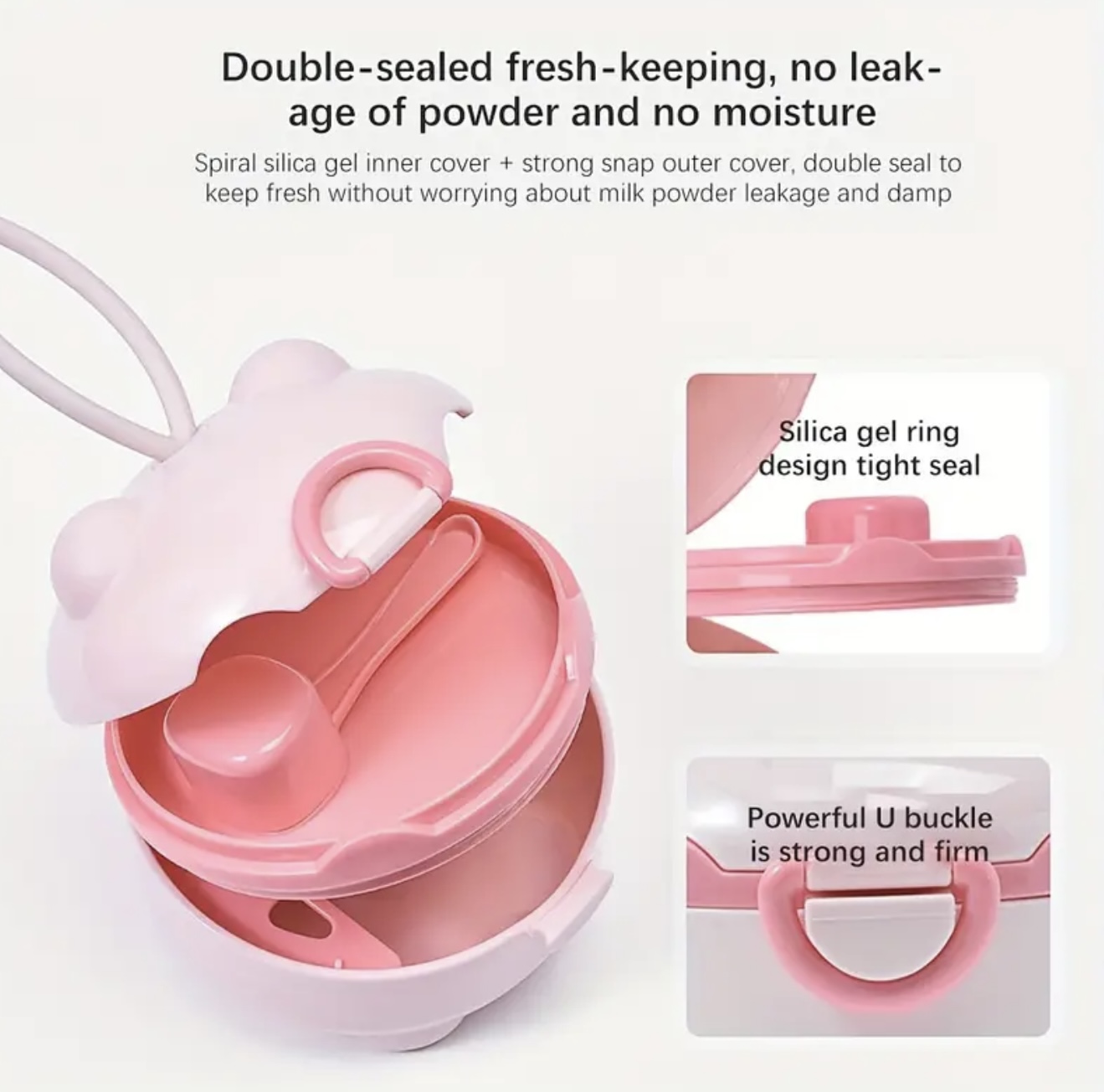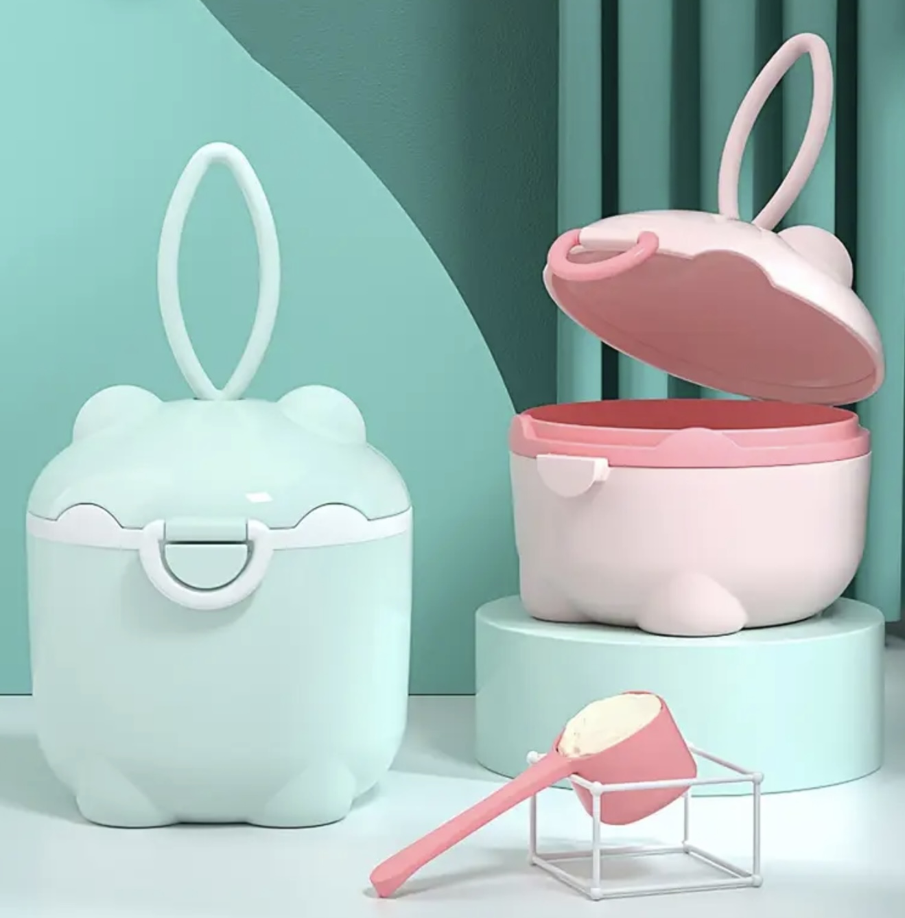 [ظرف قابلحمل شیر ۲۵۰ میلیلیتر] ظرف قابلحمل ۲۵۰ میلیلیتری برای نگهداری شیرخشک | ظرف نگهداری غذا و تنقلات با درب فلیپ و قاشق همراه