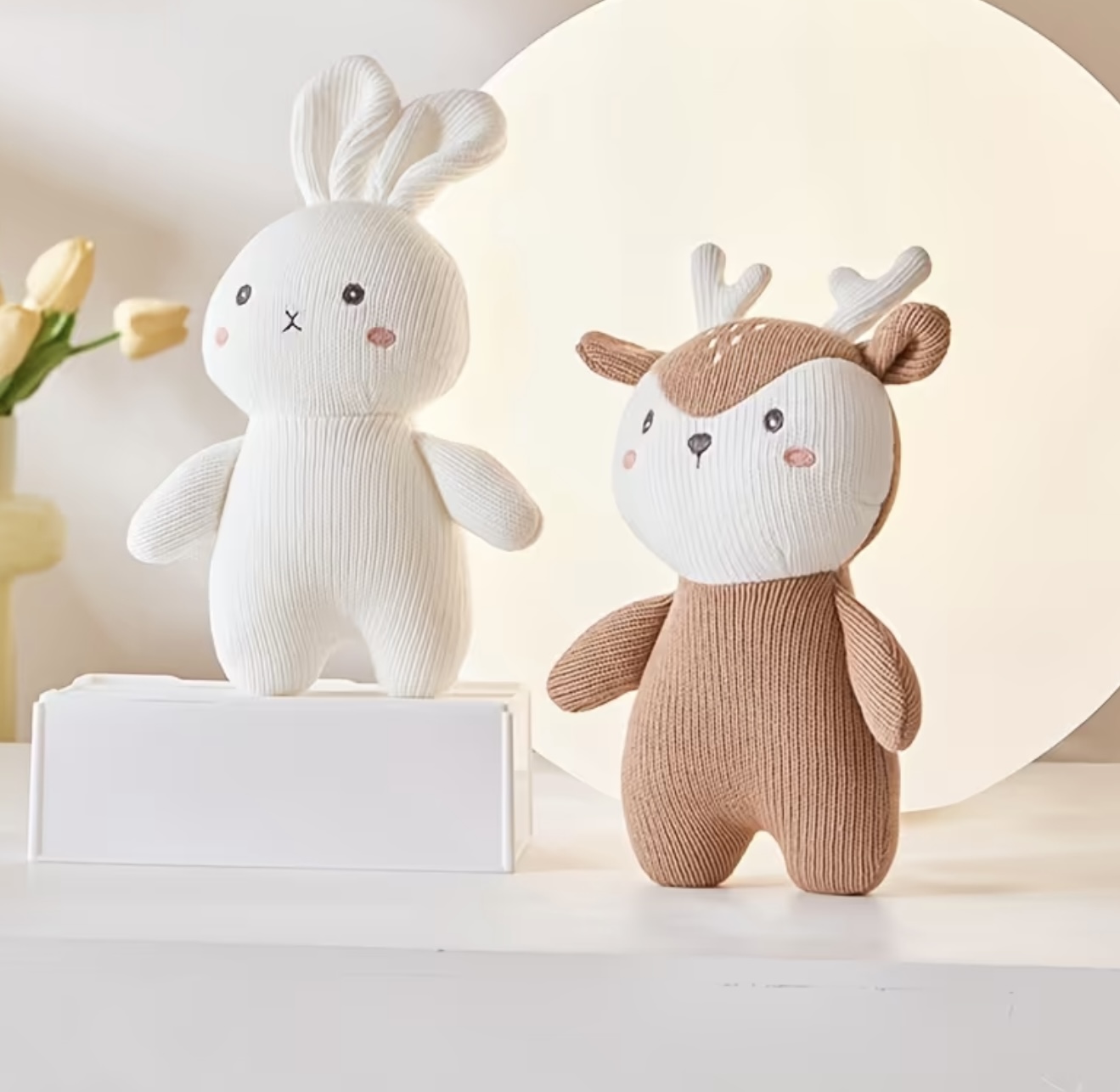 عروسک بافتنی بامزه و کیوت شامل عروسک گوزن نرم، خرگوش با گوش بلند