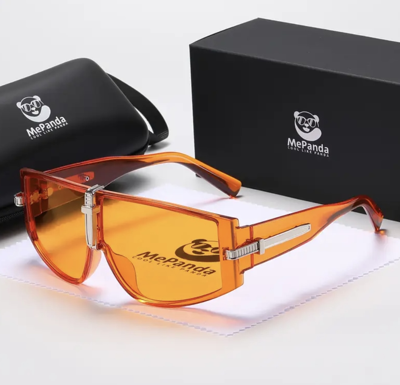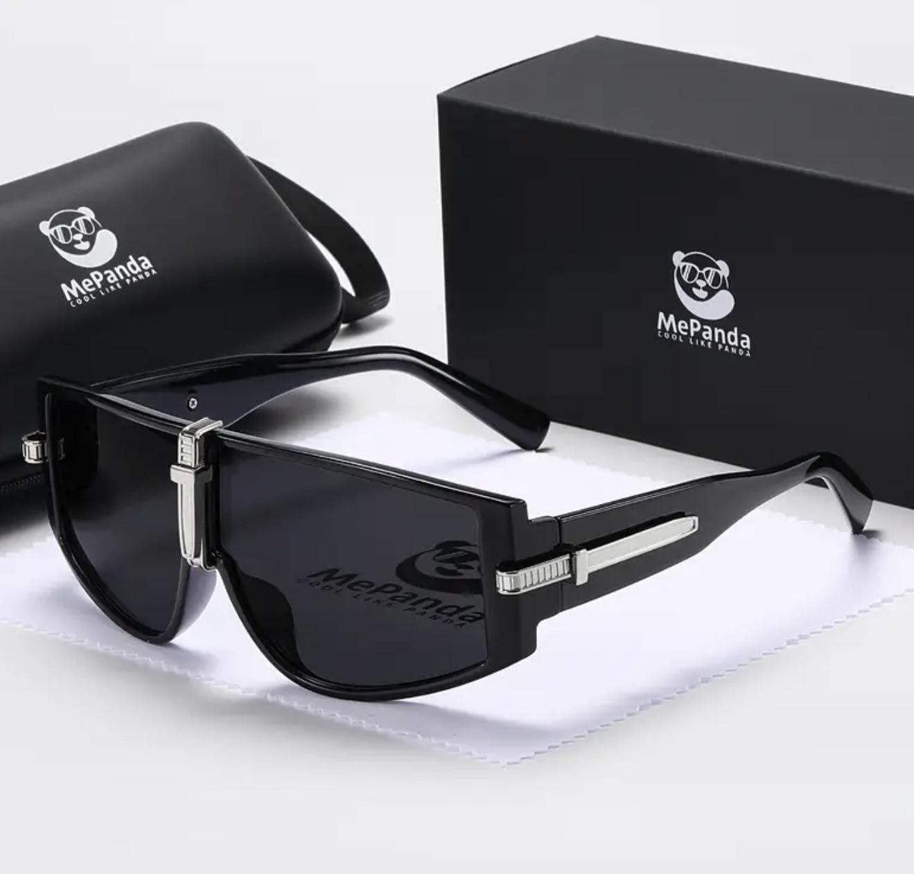 عینک فشن بزرگ یونیسکس MePanda – دارای لنزهای ضدتابش و محافظ، با لوگوی پاندا، بههمراه قاب و دستمال میکروفایبر، مناسب پیادهروی، سفر و استفاده روزانه، ساخته شده با کیفیت بالا