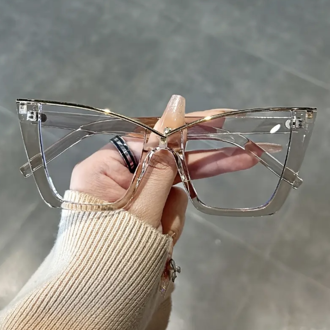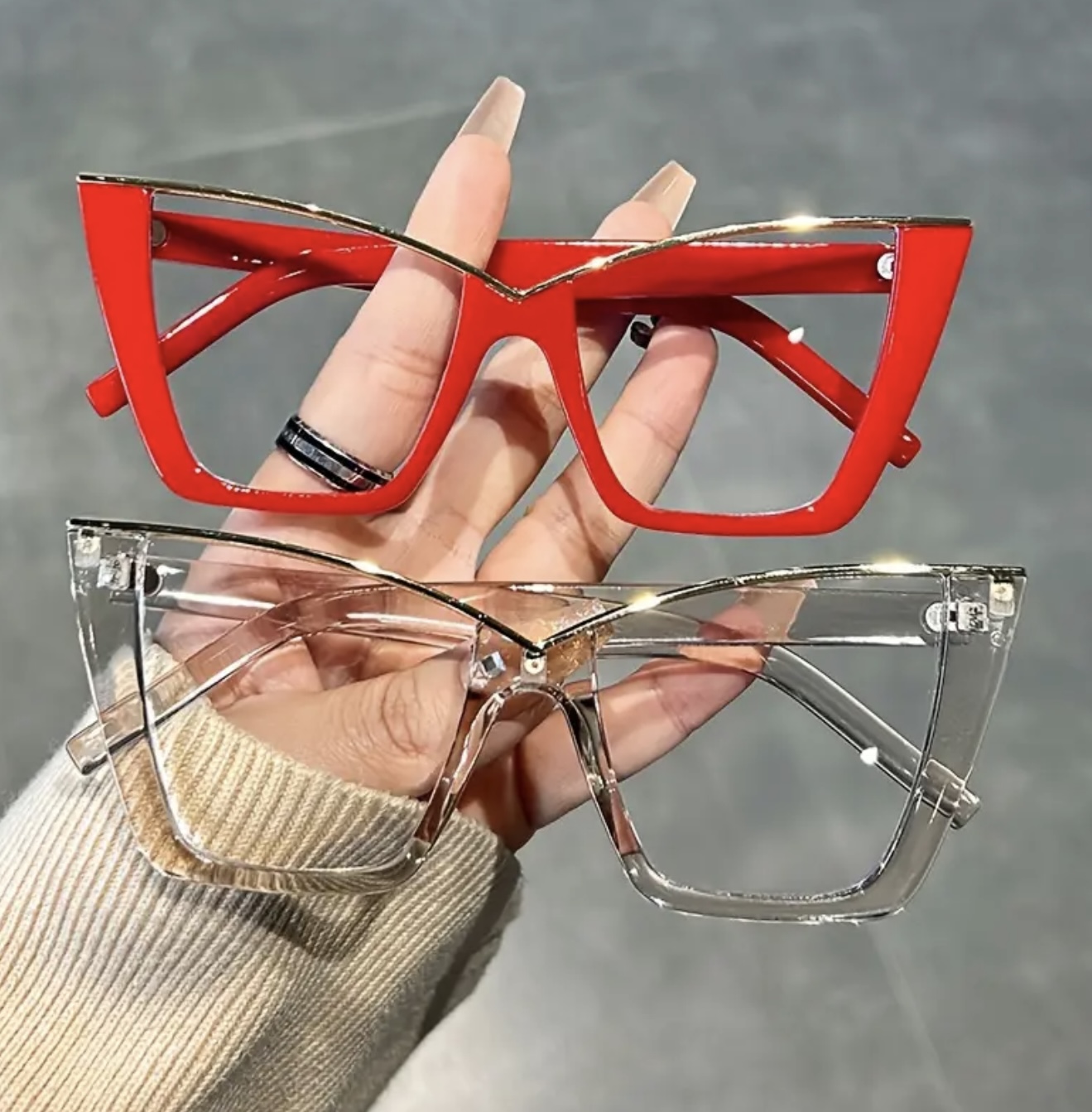 عینک چشم‌گربه‌ای وینتیج با لنز شفاف، مناسب استفاده با کامپیوتر، دارای فریم ژله‌ای رنگی مخصوص بانوان، عینکی فشن با قابلیت محافظت از چشم