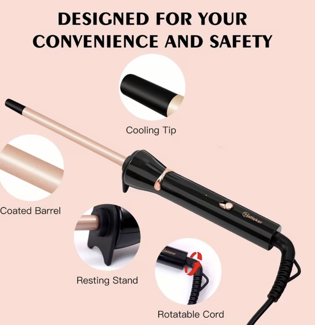 فرکننده موی برقی مینی مخصوص چتری و موهای کوتاه، مناسب ایجاد فرهای ریز (استایل نودل فوری)، با میله باریک ۹ میلیمتری