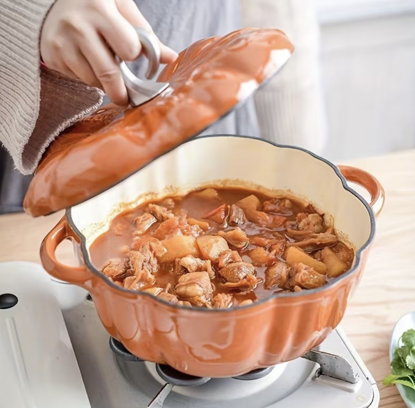 قابلمه پخت و پز لعابی به شکل کدو تنبل