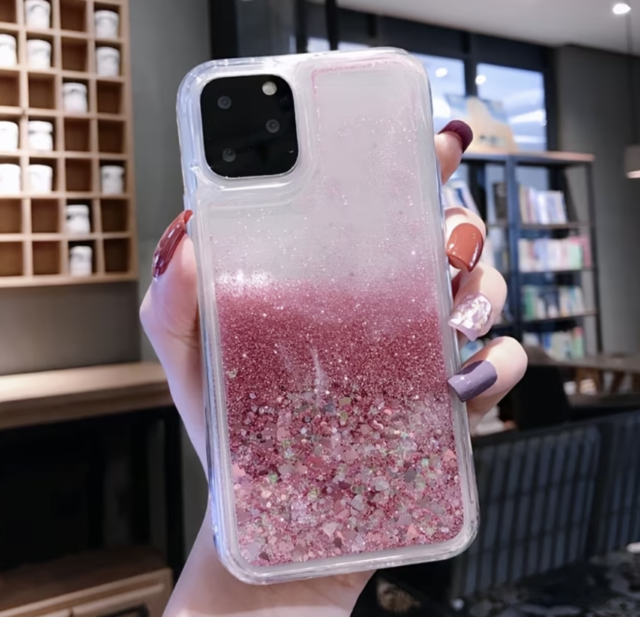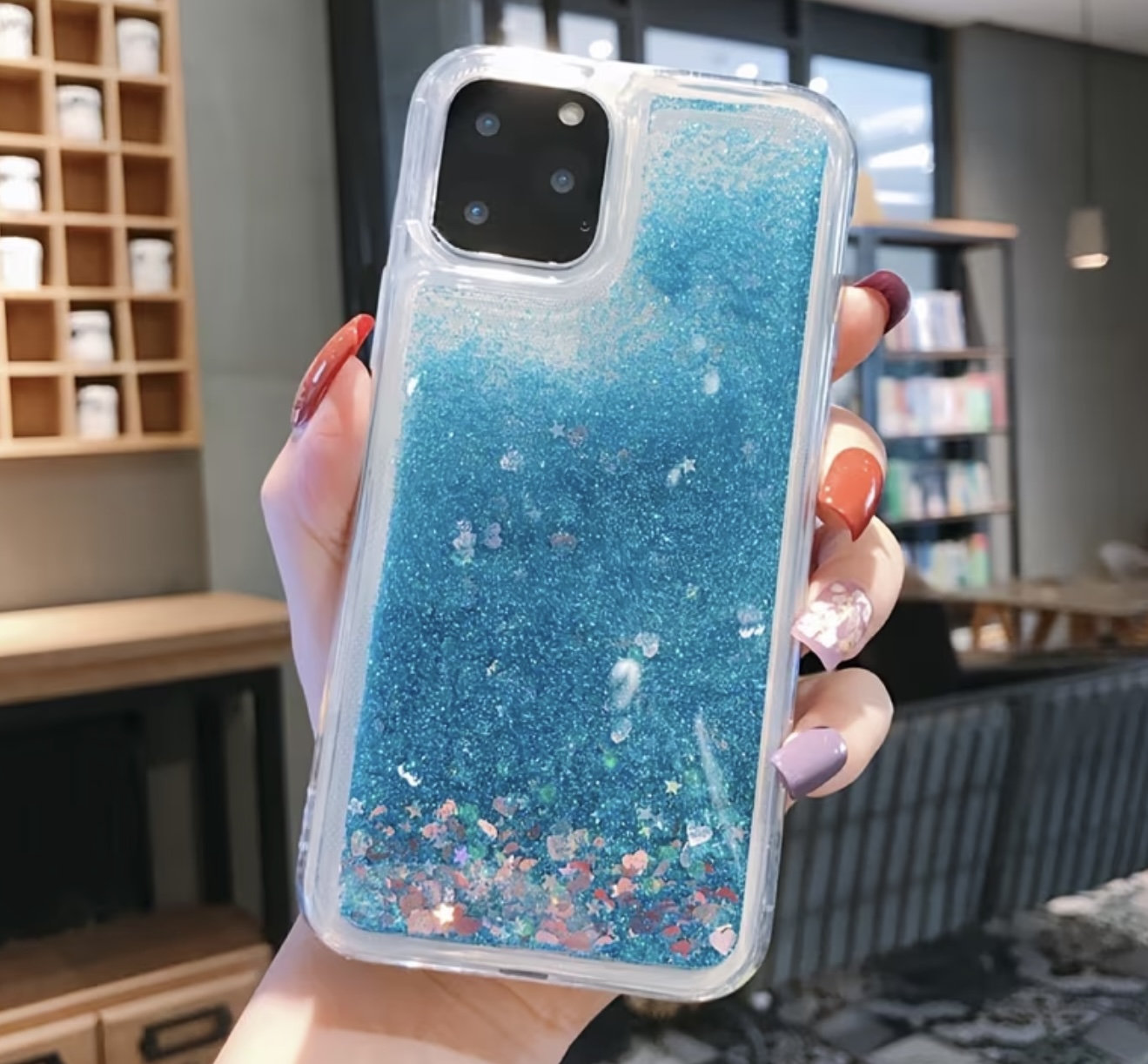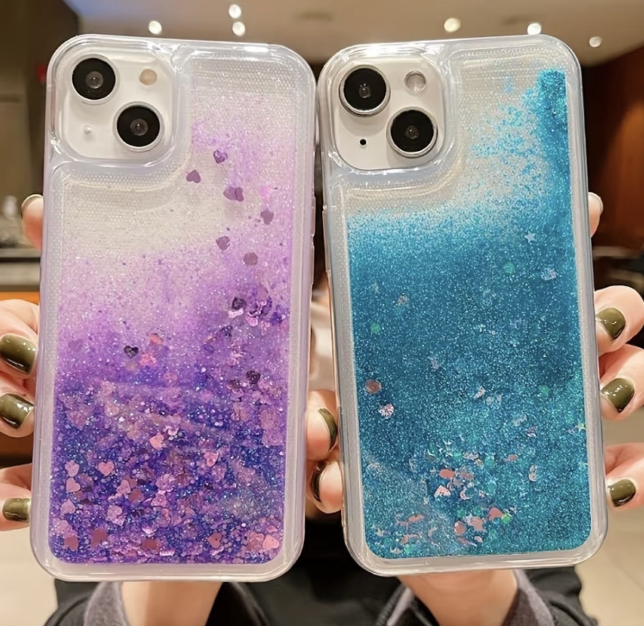 & Free Shippingقاب قلب درخشان با افکت مایع و شن براق