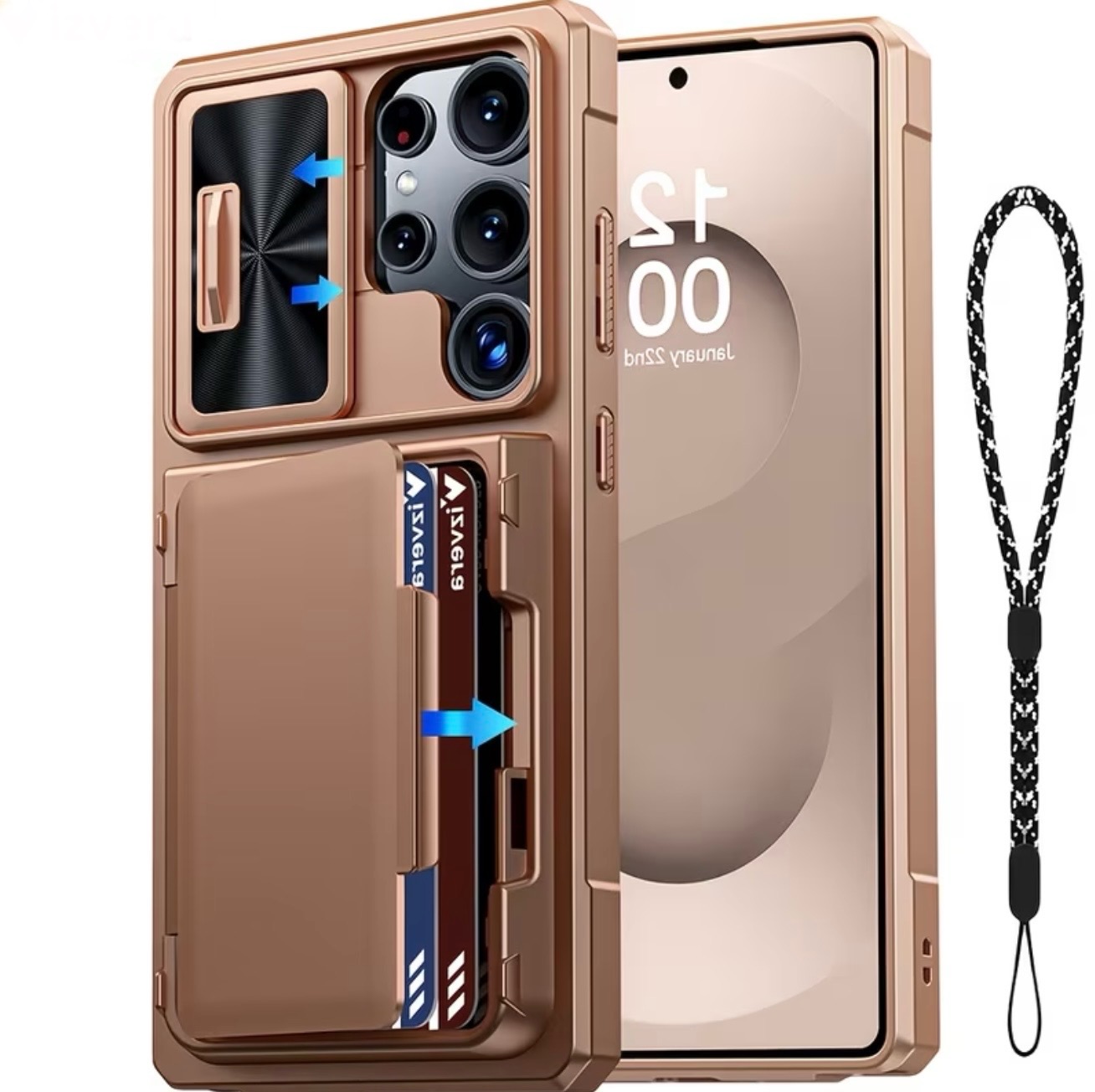 کیف پول، نگهدارنده کارت (تا ۴ کارت) و قاب با پایه نگهدارنده، مناسب برای زنان و مردان، قاب کامل محافظ از جنس PC برای S25 Ultra ۲۰۲۵، همراه با بند گوشی