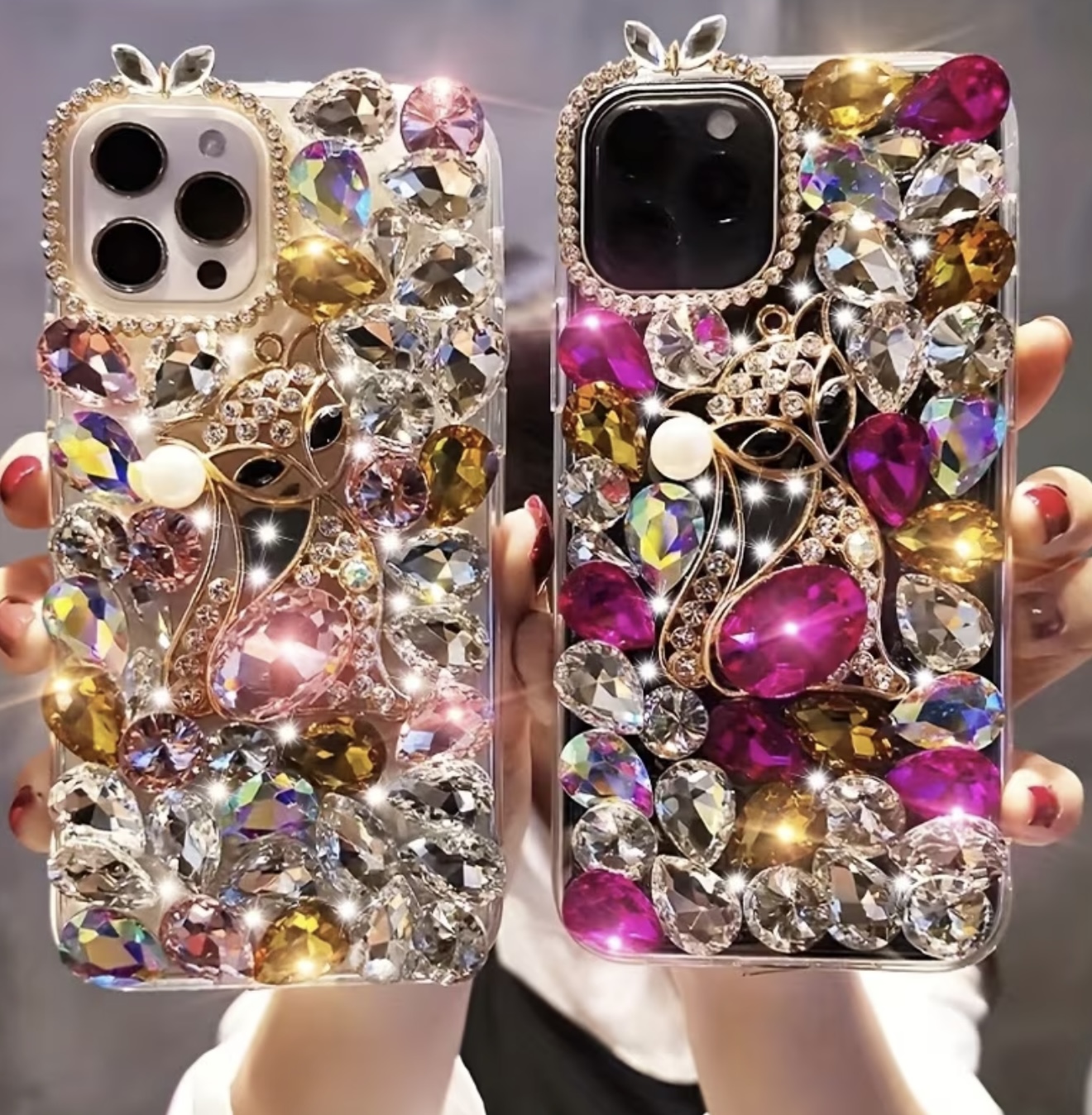 & Free Shippingقاب گوشی لوکس و مدرن با نگین و مروارید به شکل روباه