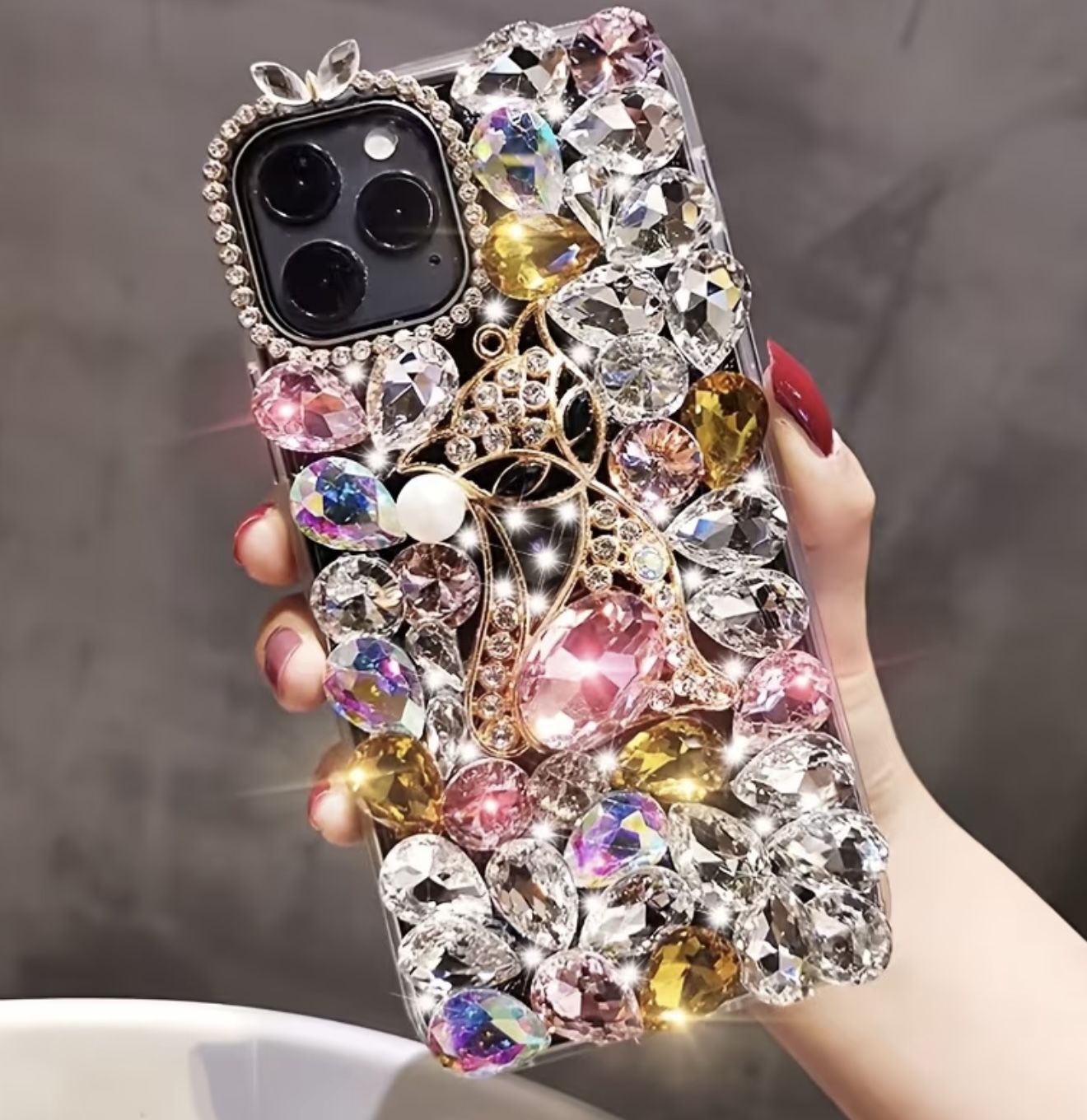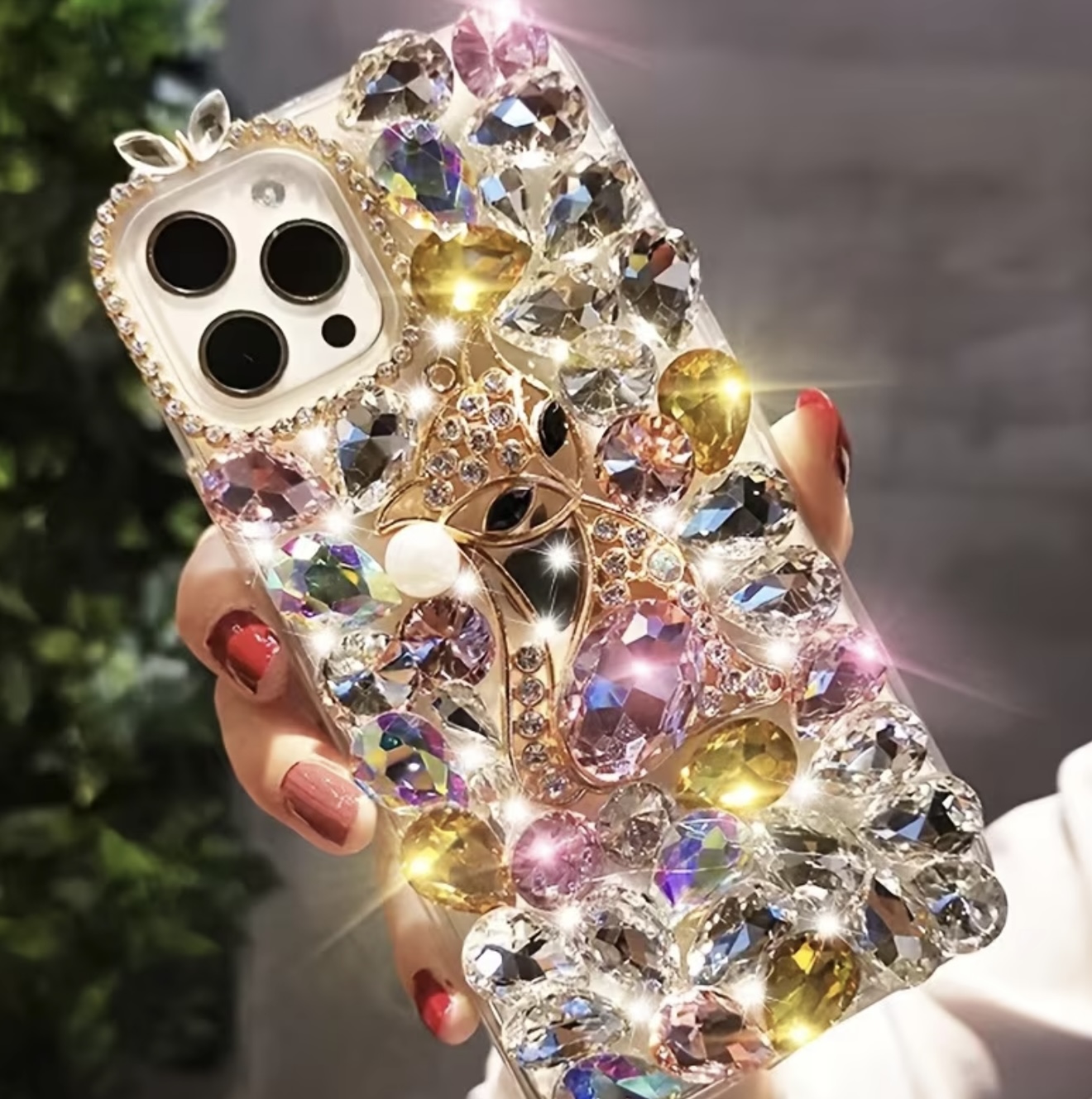 قاب گوشی لوکس و مدرن با نگین و مروارید به شکل روباه