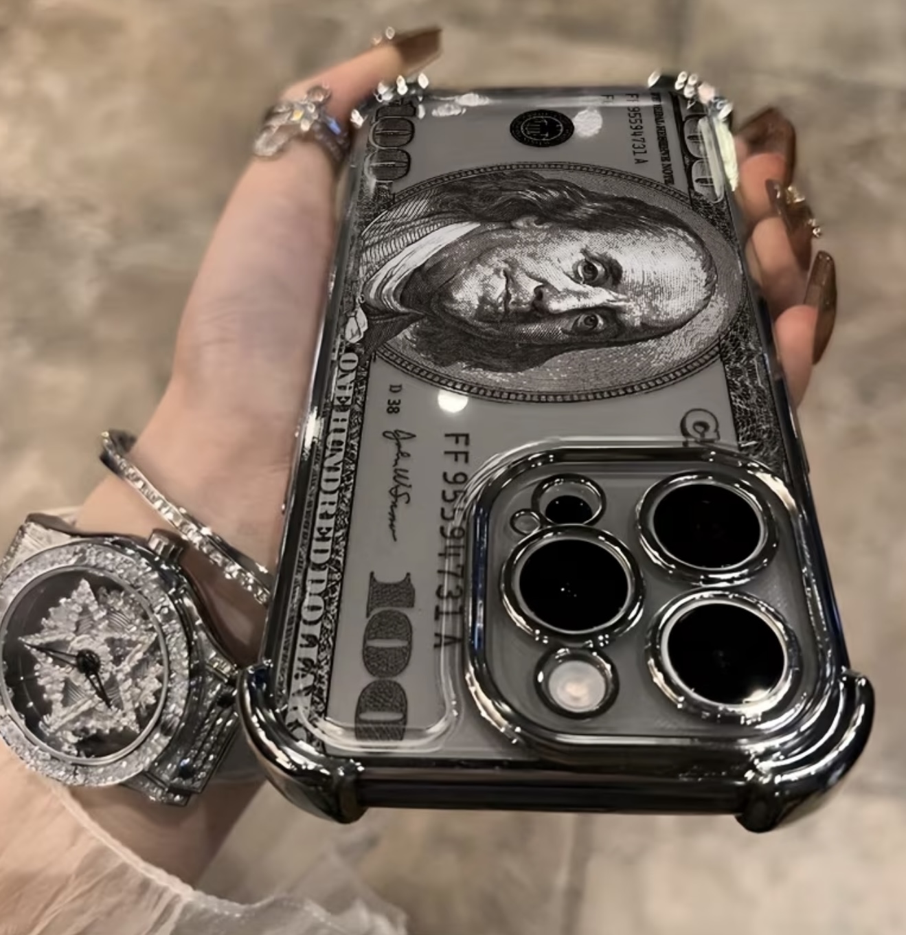 & Free Shippingقاب گوشی کلاسیک و خلاقانه با طرح دلار